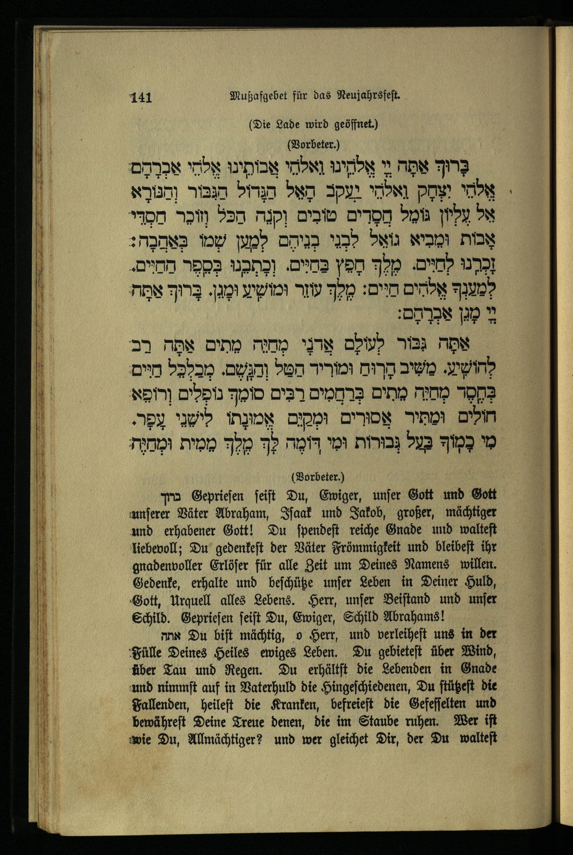 תפילת מוסף לראש השנה Mußafgebet für das Neujahrsfest.