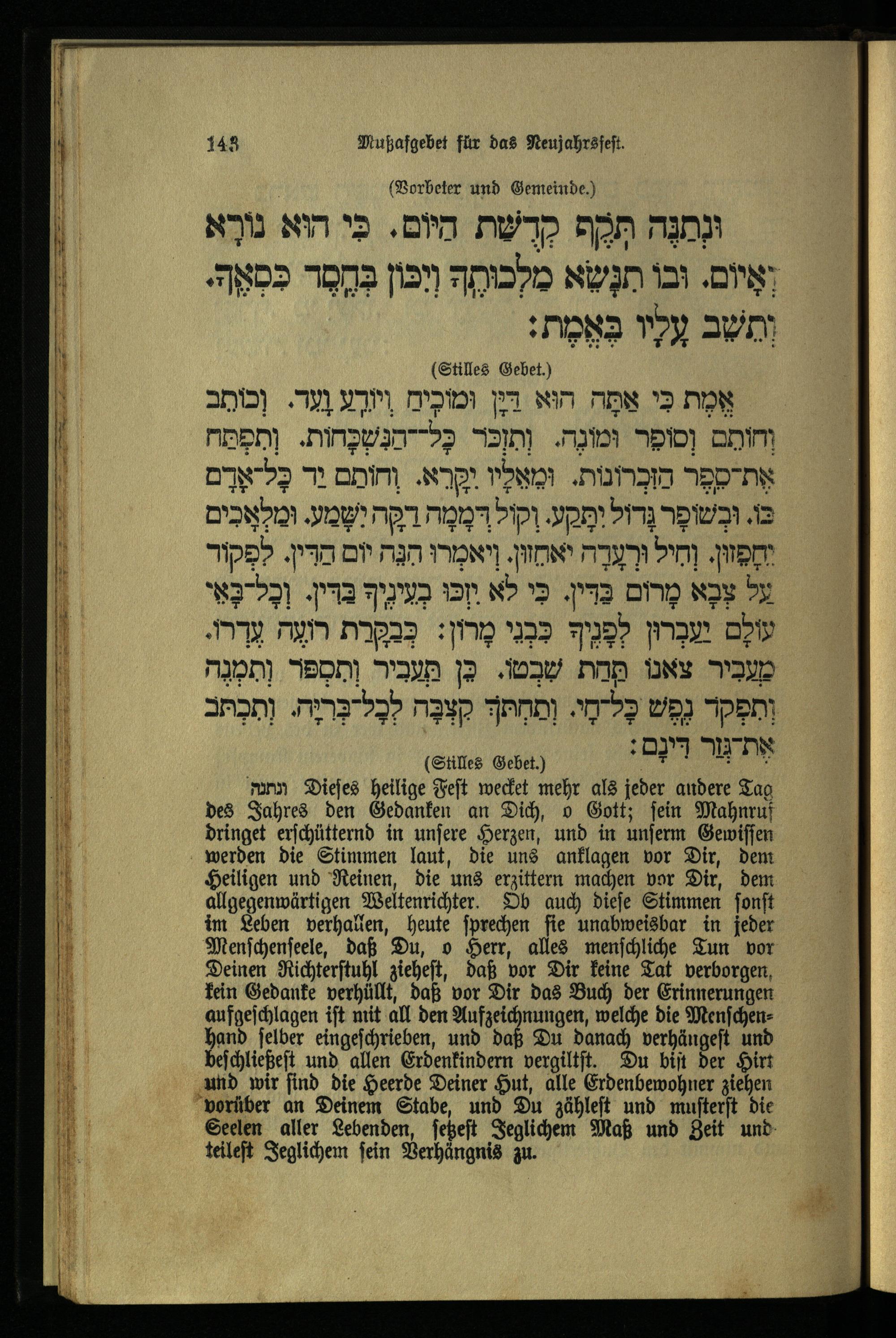 תפילת מוסף לראש השנה Mußafgebet für das Neujahrsfest.