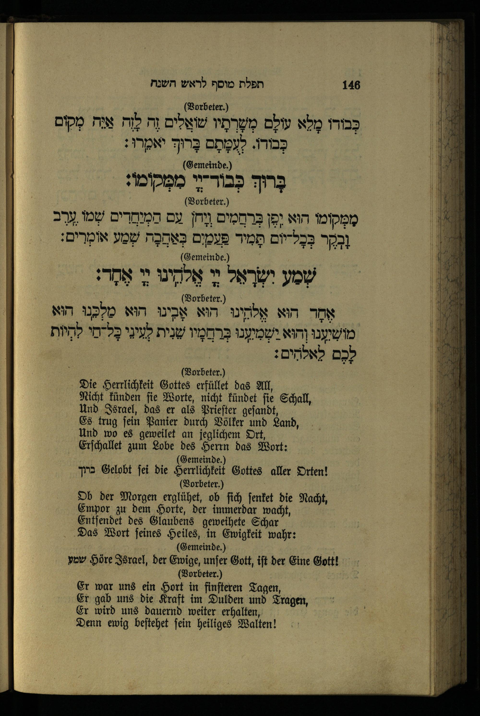 תפילת מוסף לראש השנה Mußafgebet für das Neujahrsfest.