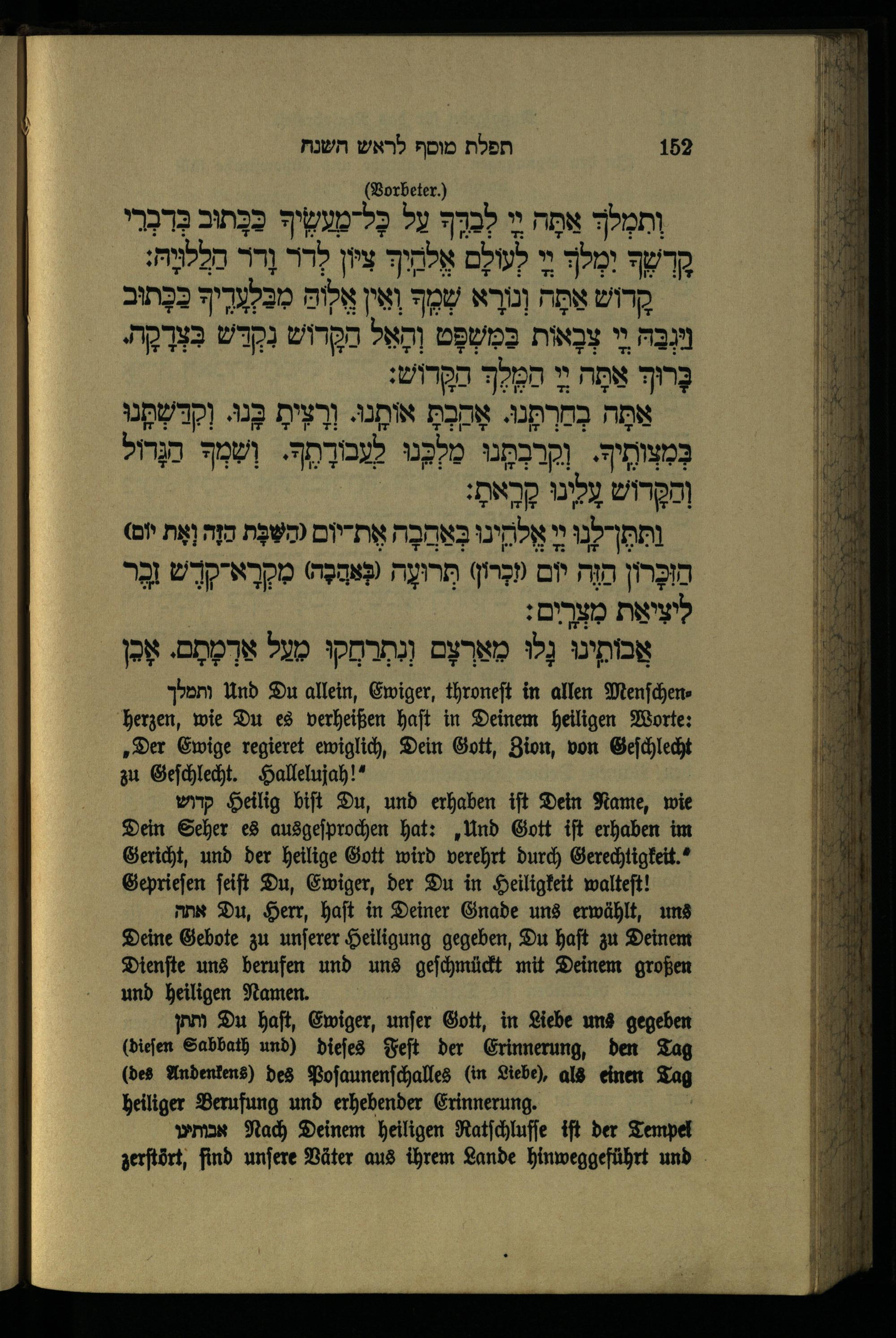 תפילת מוסף לראש השנה Mußafgebet für das Neujahrsfest.