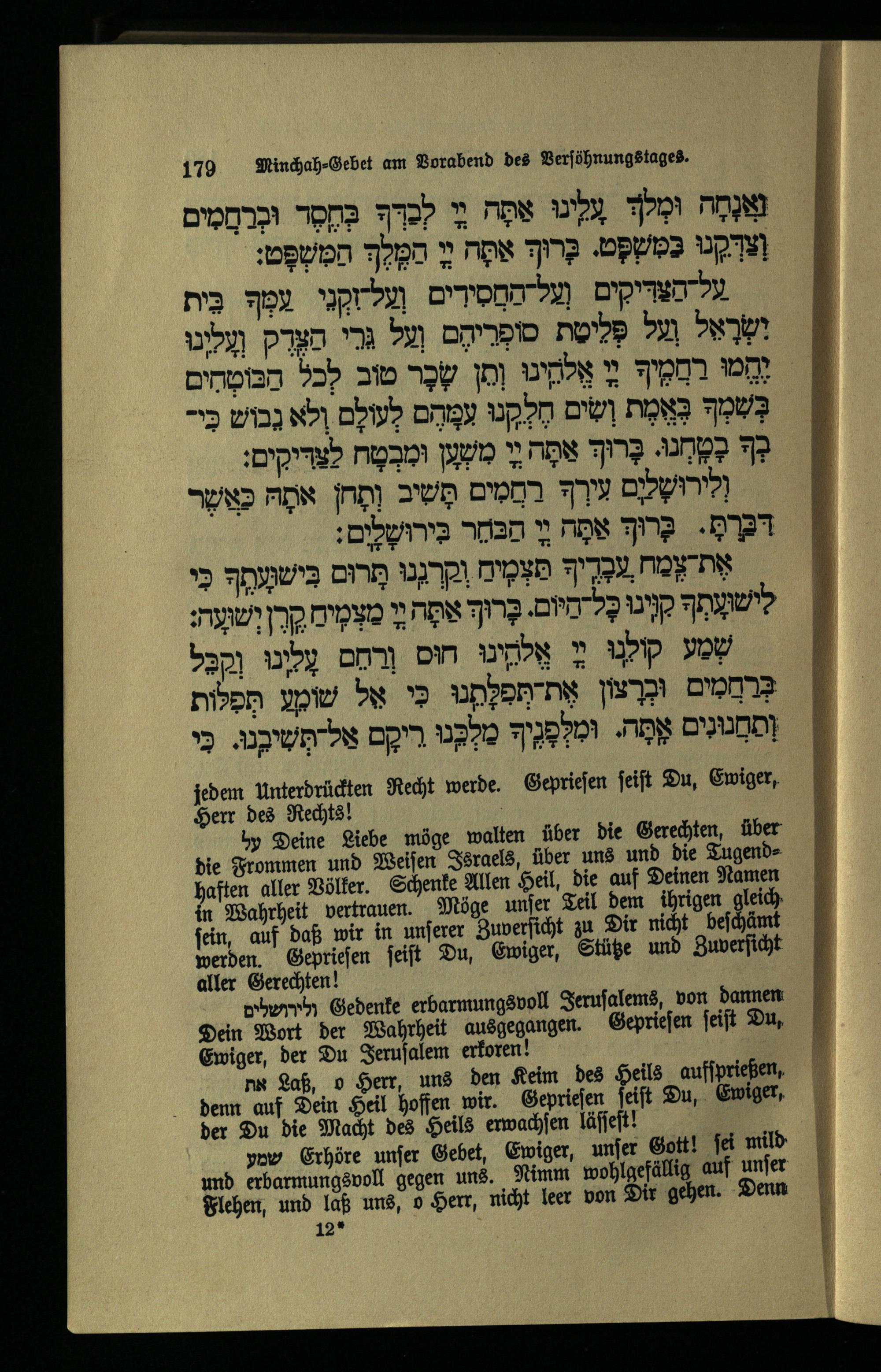 תפילה מנחה ליום כפור Minchahgebet für den Versöhnungstag.