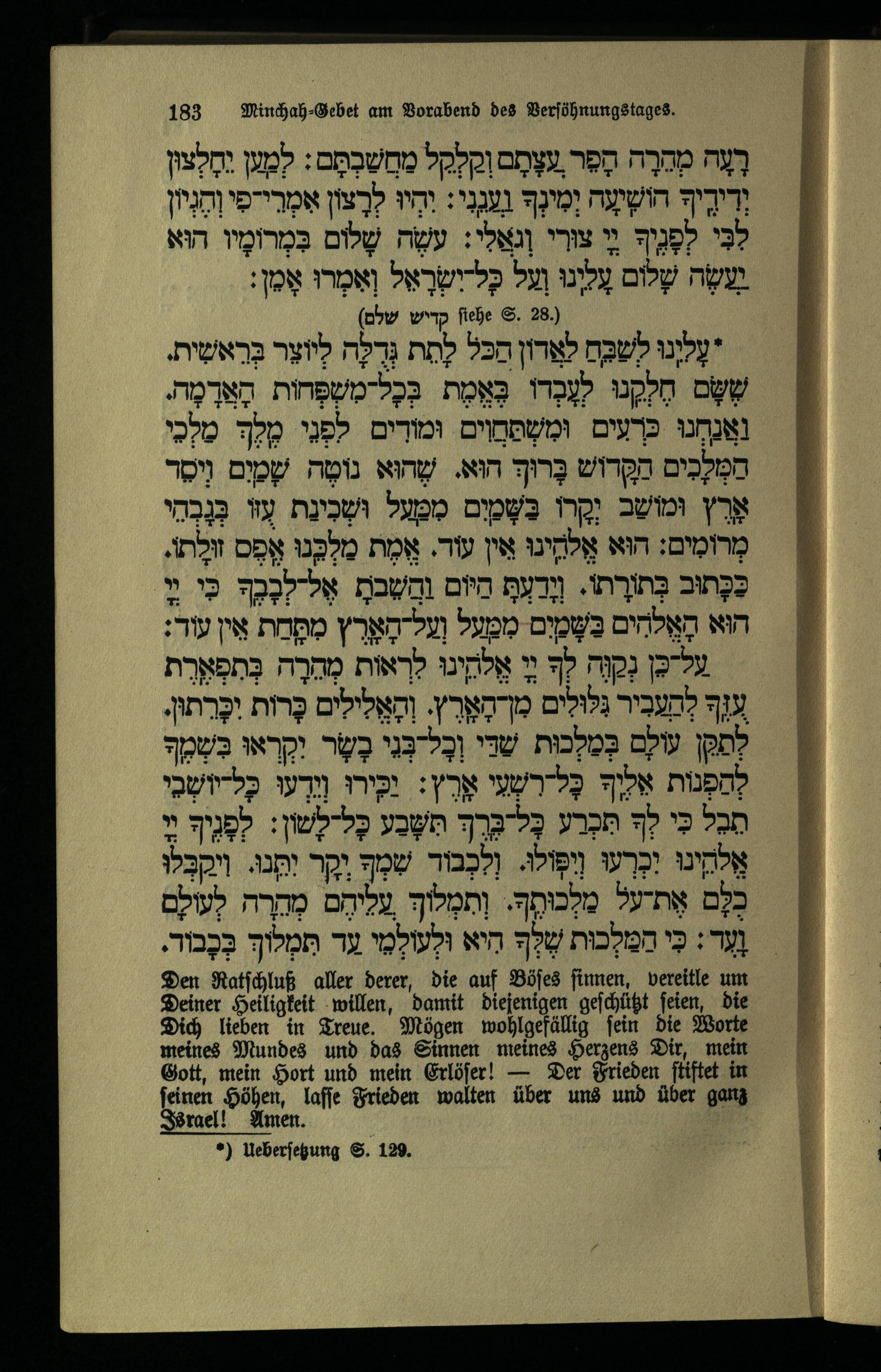 תפילה מנחה ליום כפור Minchahgebet für den Versöhnungstag.