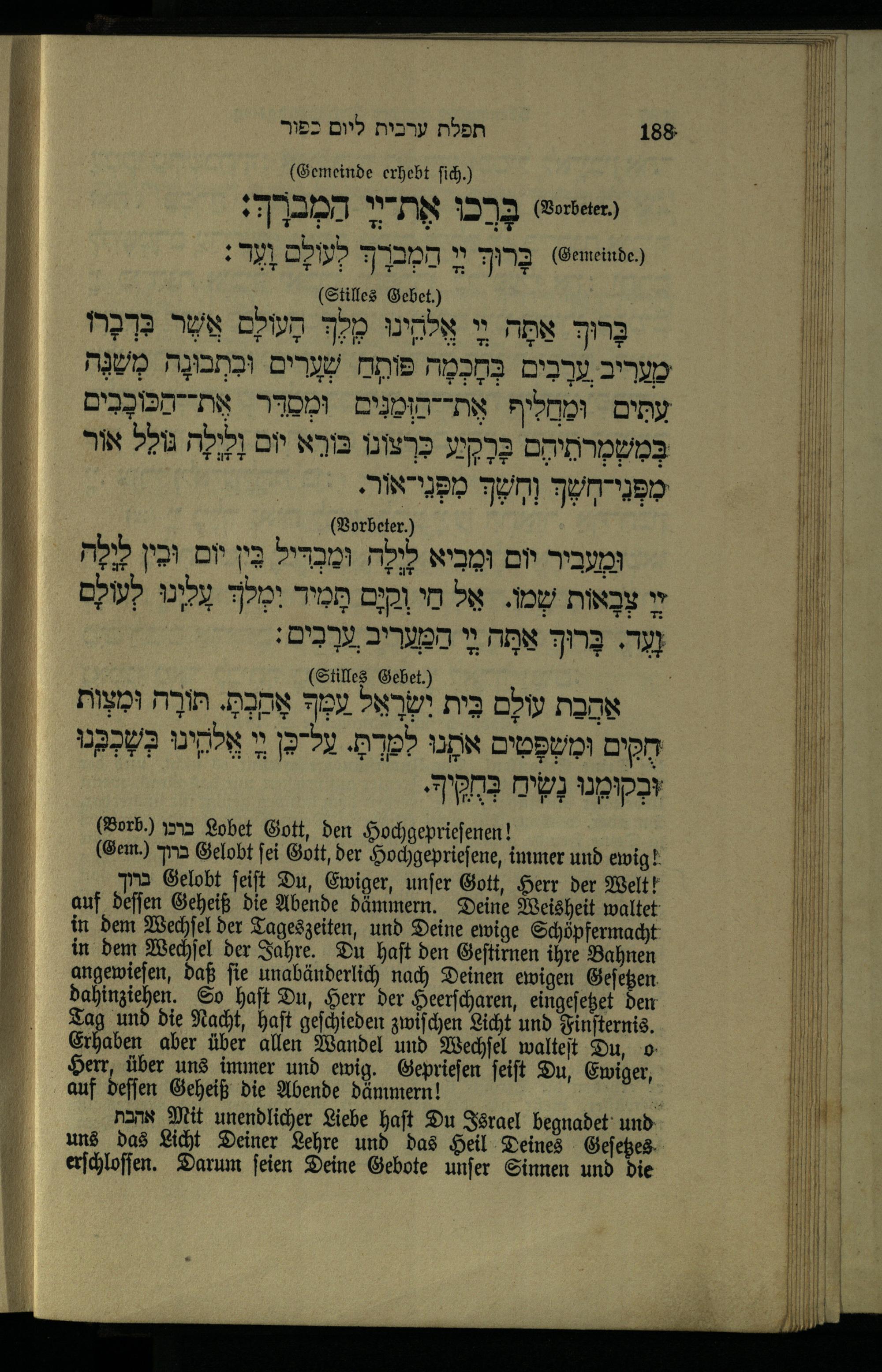 תפילה מעריב ליום כפור Abendgebet für den Versöhnungstag.