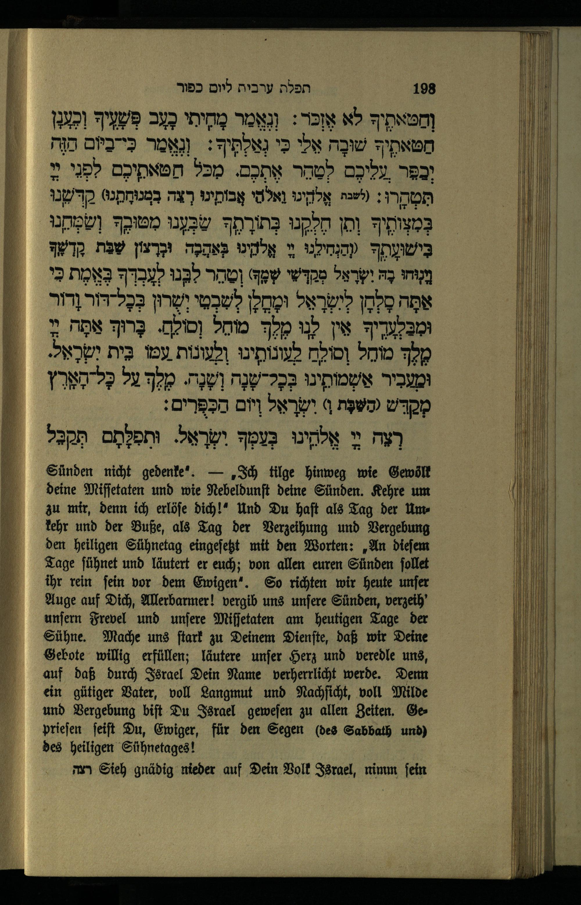 תפילה נעילה ליום כפור Schlußgebet für den Versöhnungstag.