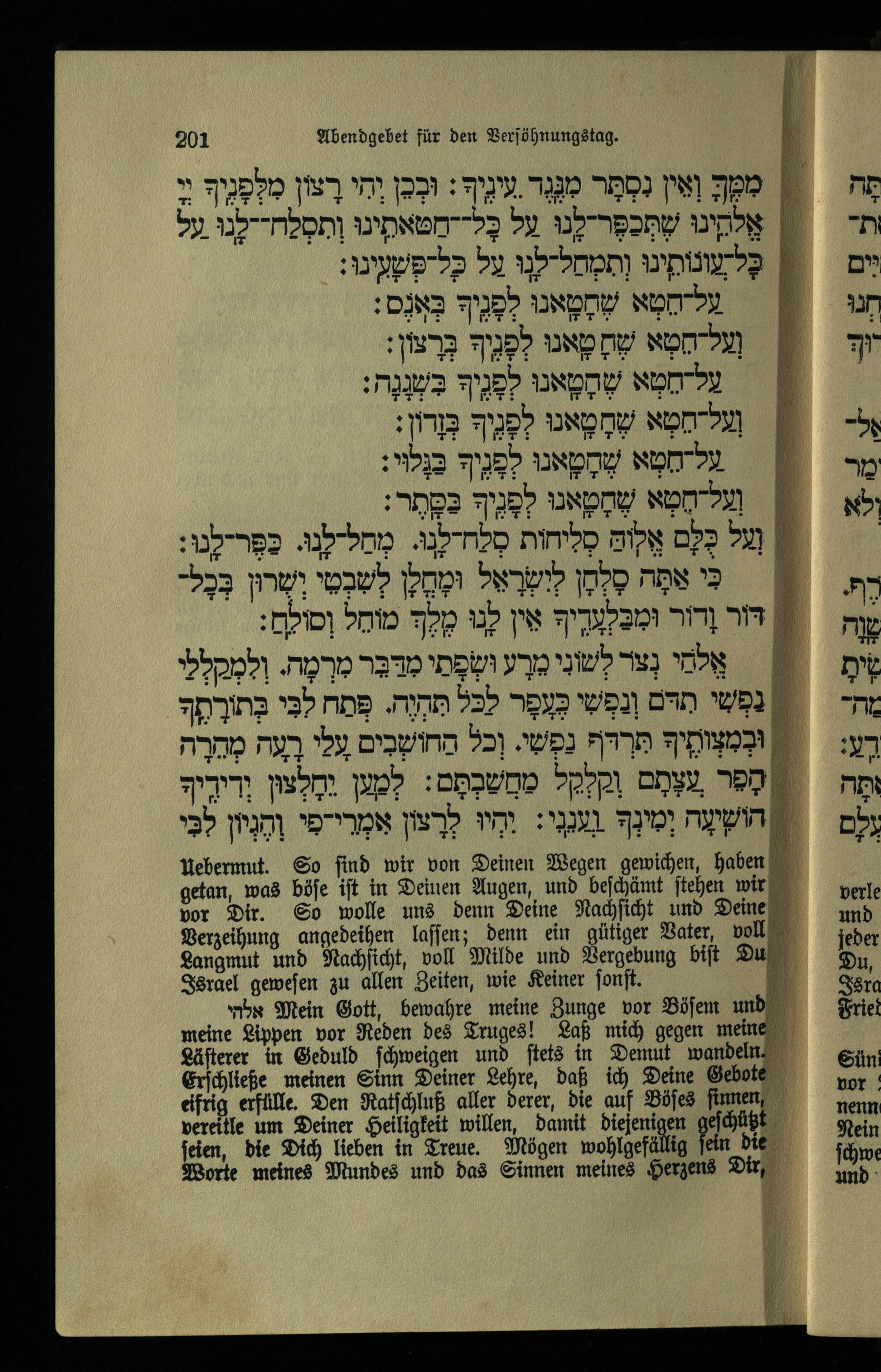 תפילה מנחה ליום כפור Minchahgebet für den Versöhnungstag.