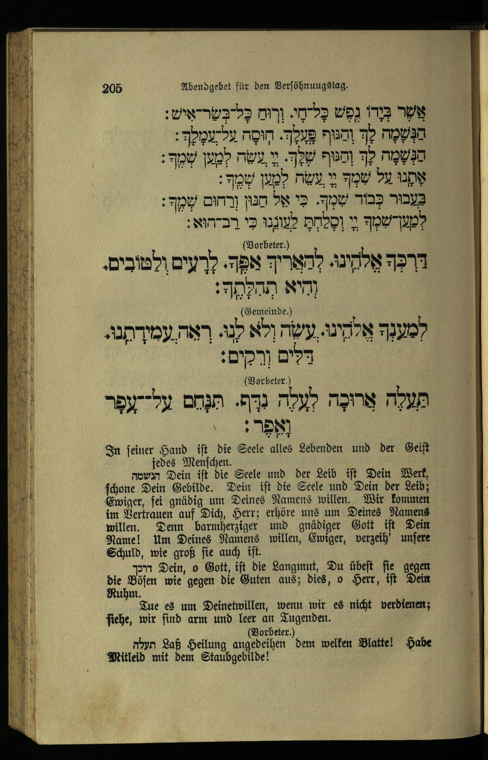 תפילה מנחה ליום כפור Minchahgebet für den Versöhnungstag.