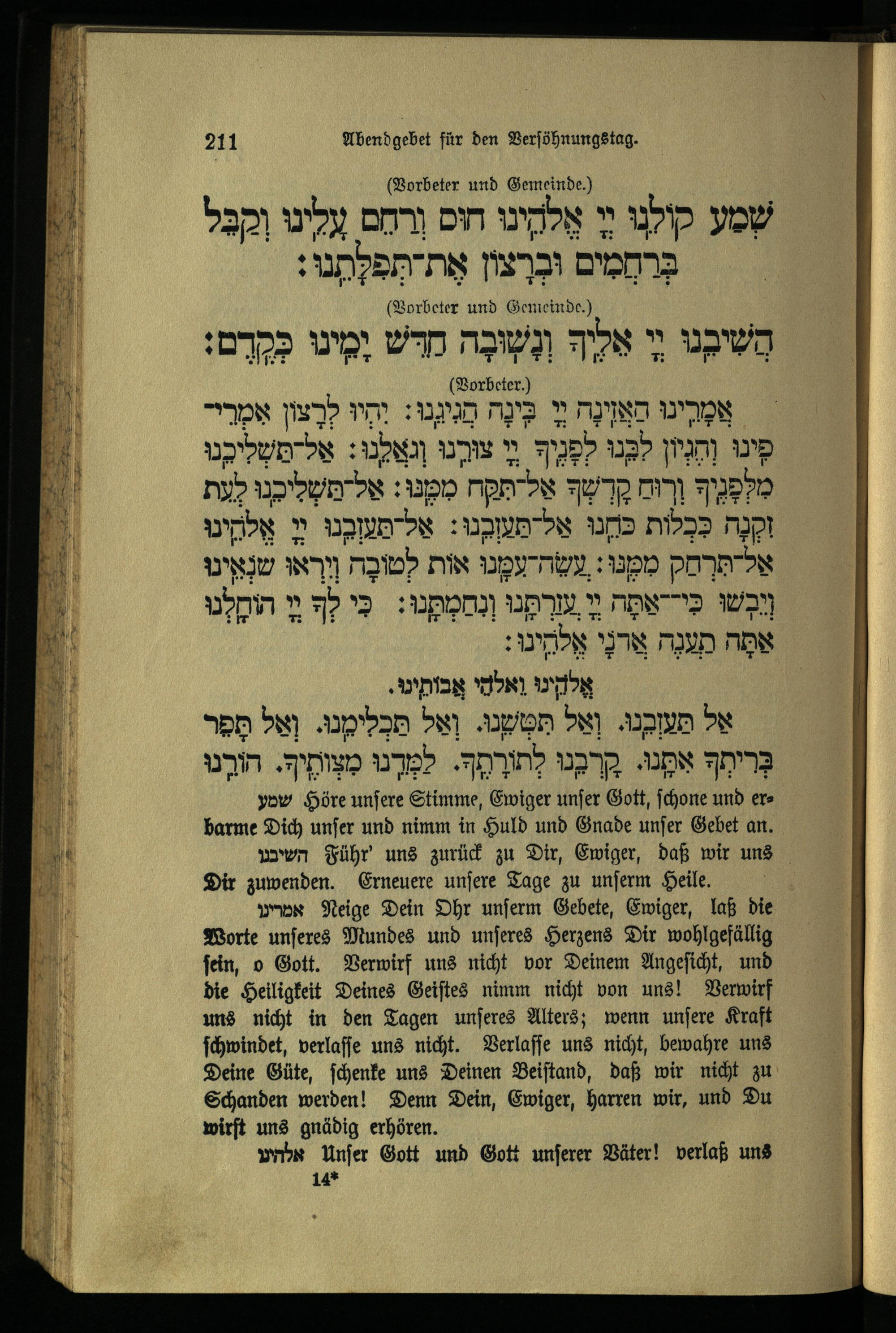 תפילה מנחה ליום כפור Minchahgebet für den Versöhnungstag.