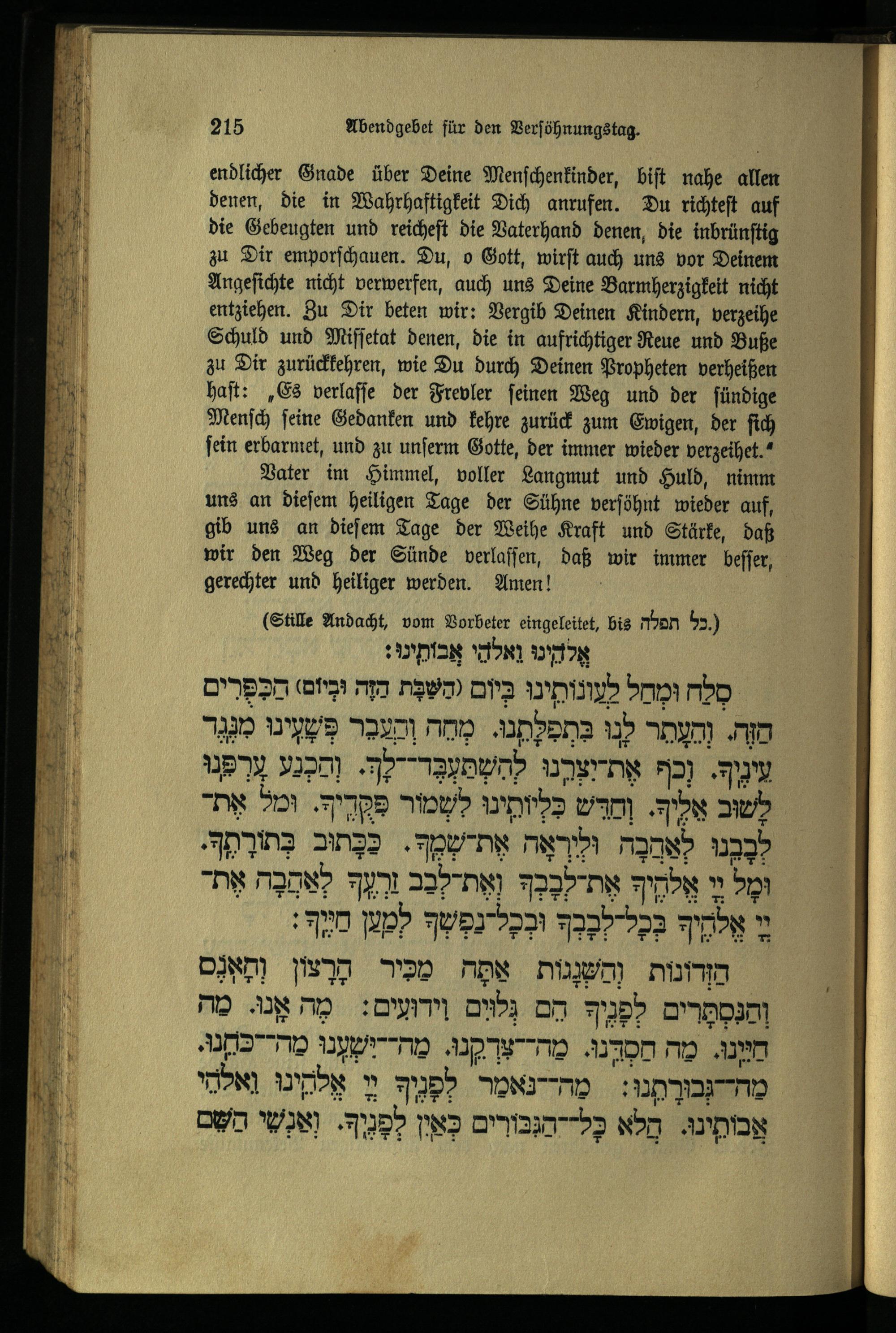 תפילה מנחה ליום כפור Minchahgebet für den Versöhnungstag.