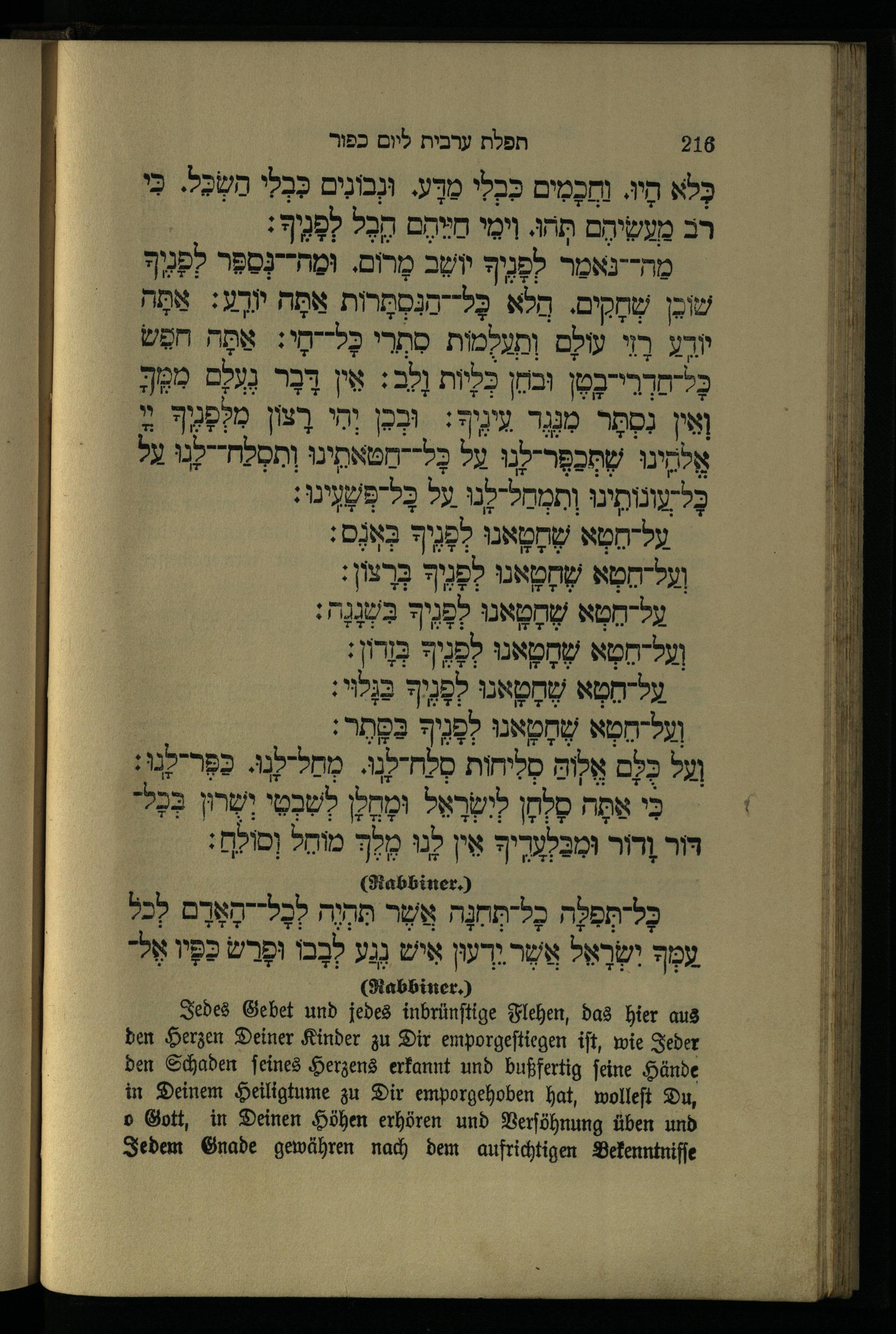 תפילה מנחה ליום כפור Minchahgebet für den Versöhnungstag.