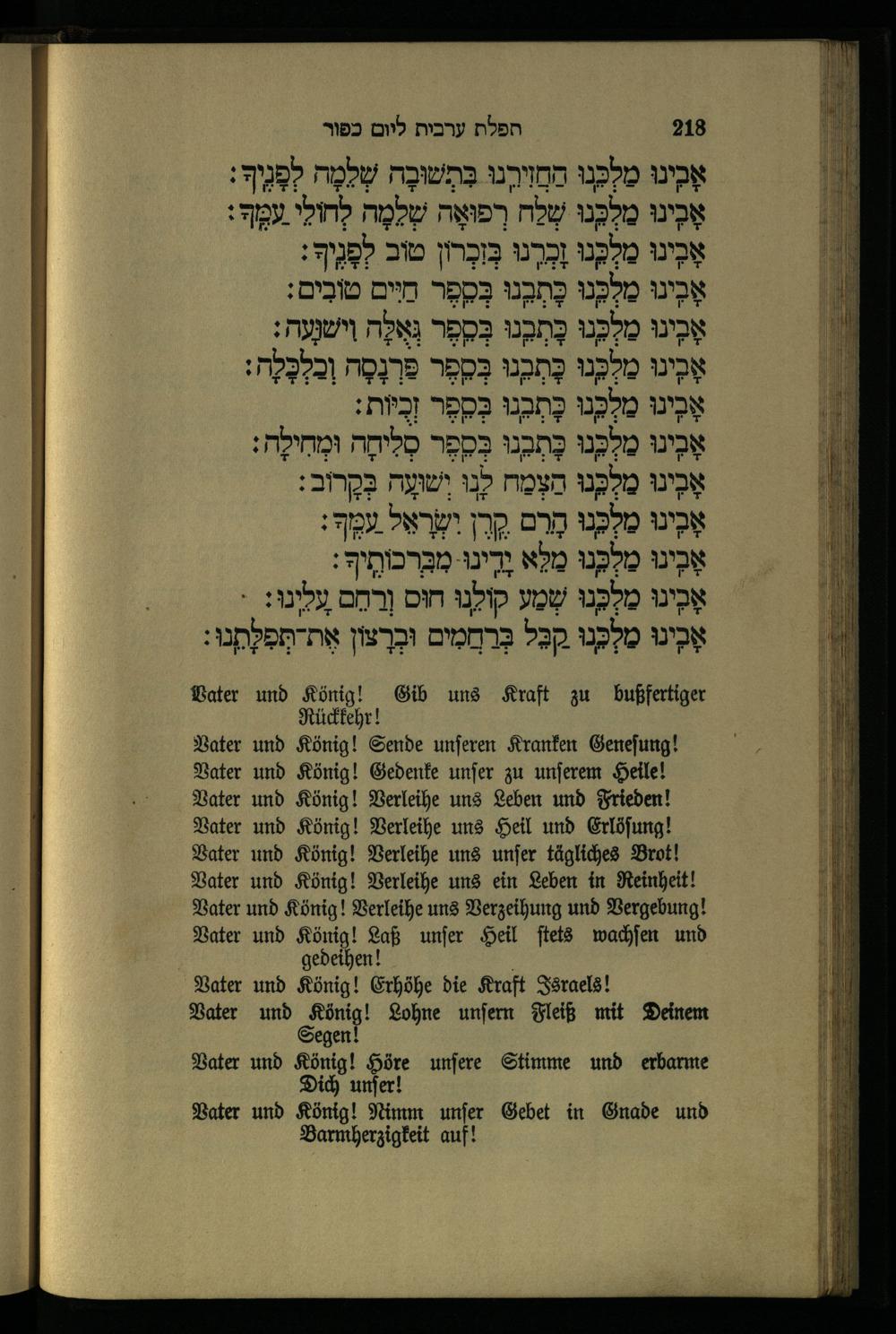 תפילה מנחה ליום כפור Minchahgebet für den Versöhnungstag.