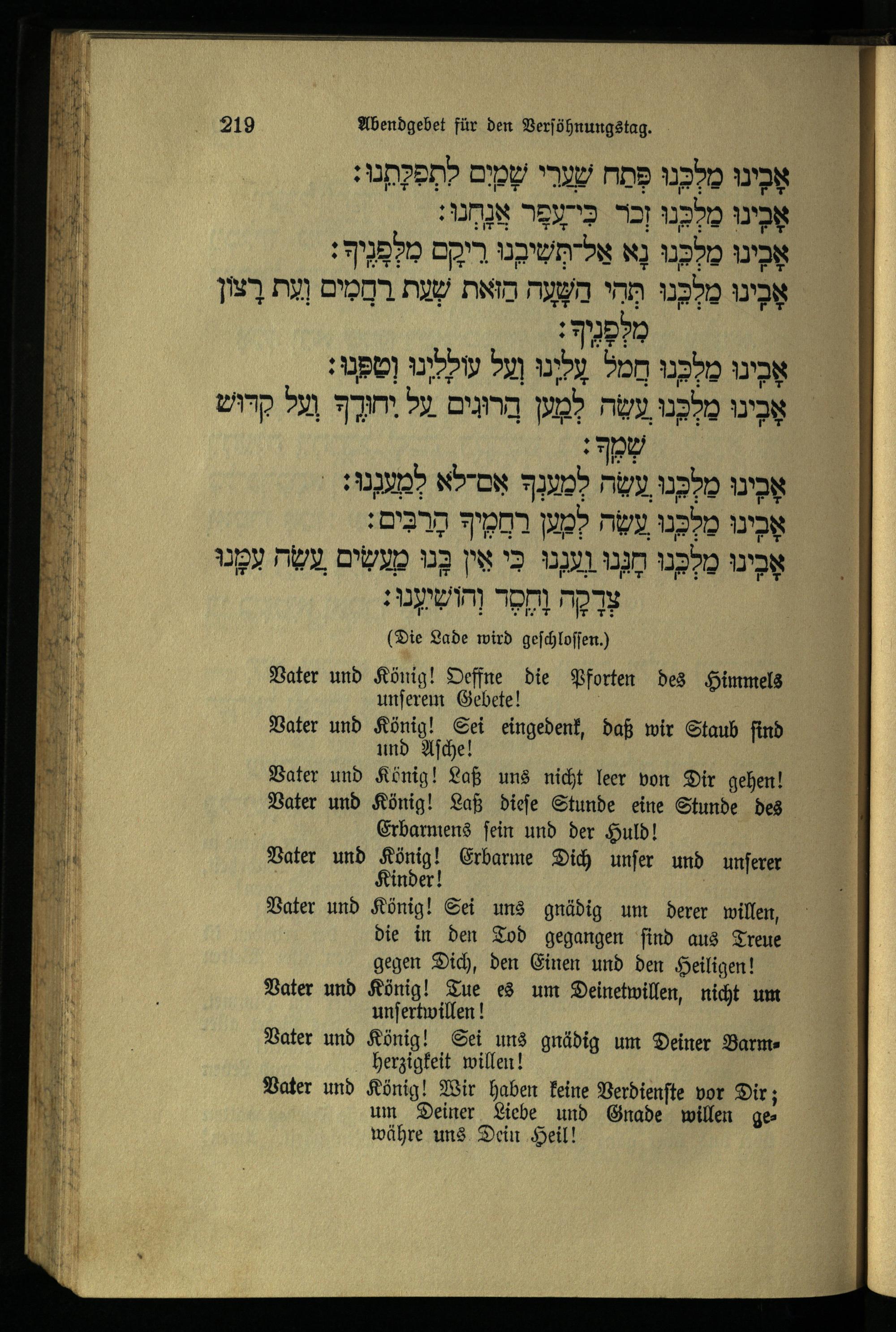 תפילה נעילה ליום כפור Schlußgebet für den Versöhnungstag.