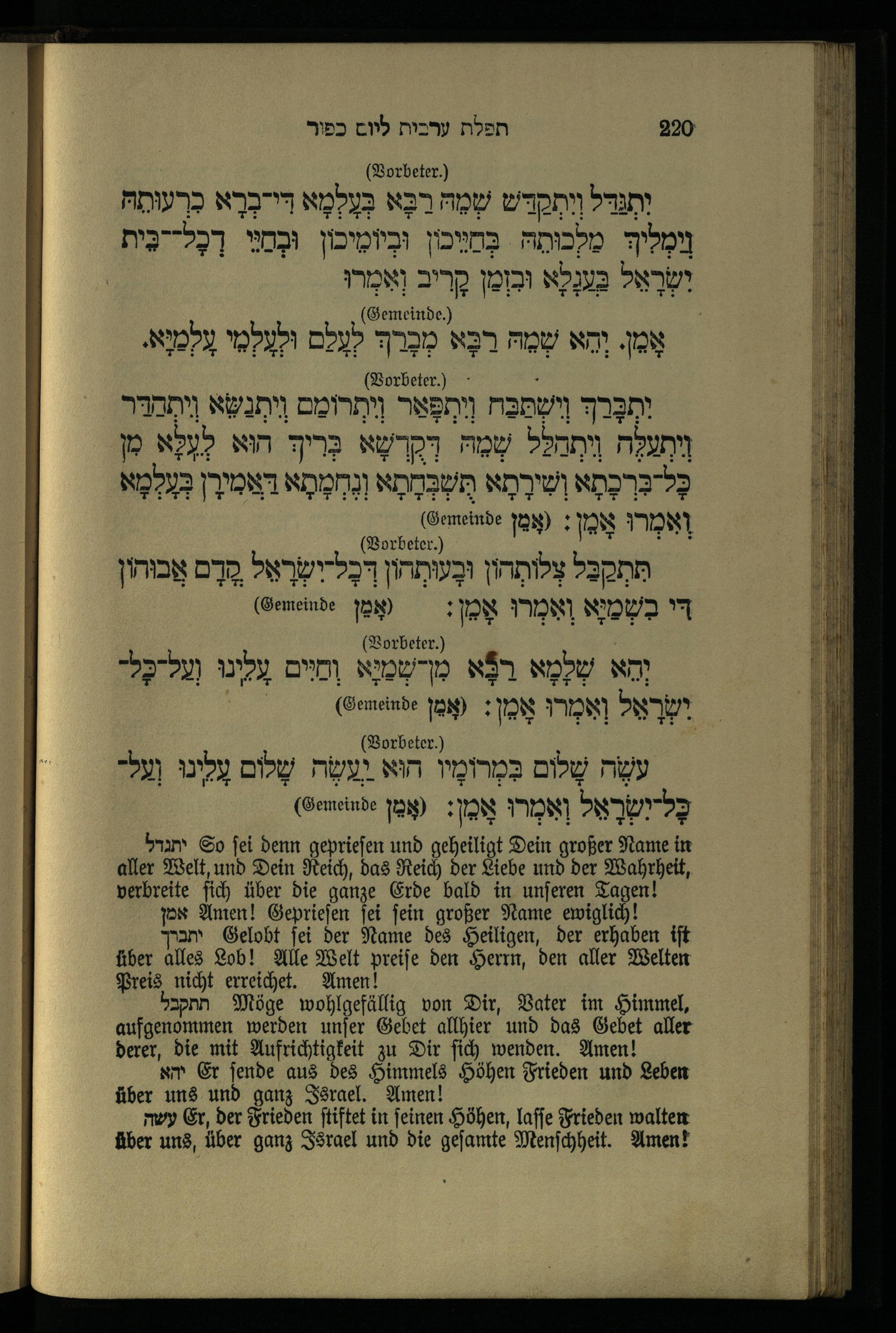תפילה מנחה ליום כפור Minchahgebet für den Versöhnungstag.