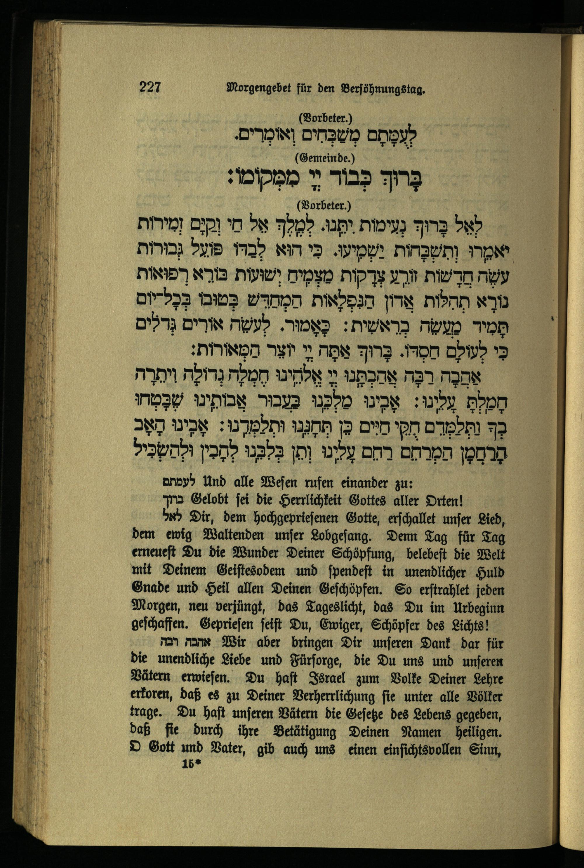 תפילה שחרית ליום כפור Morgengebet für den Versöhnungstag.