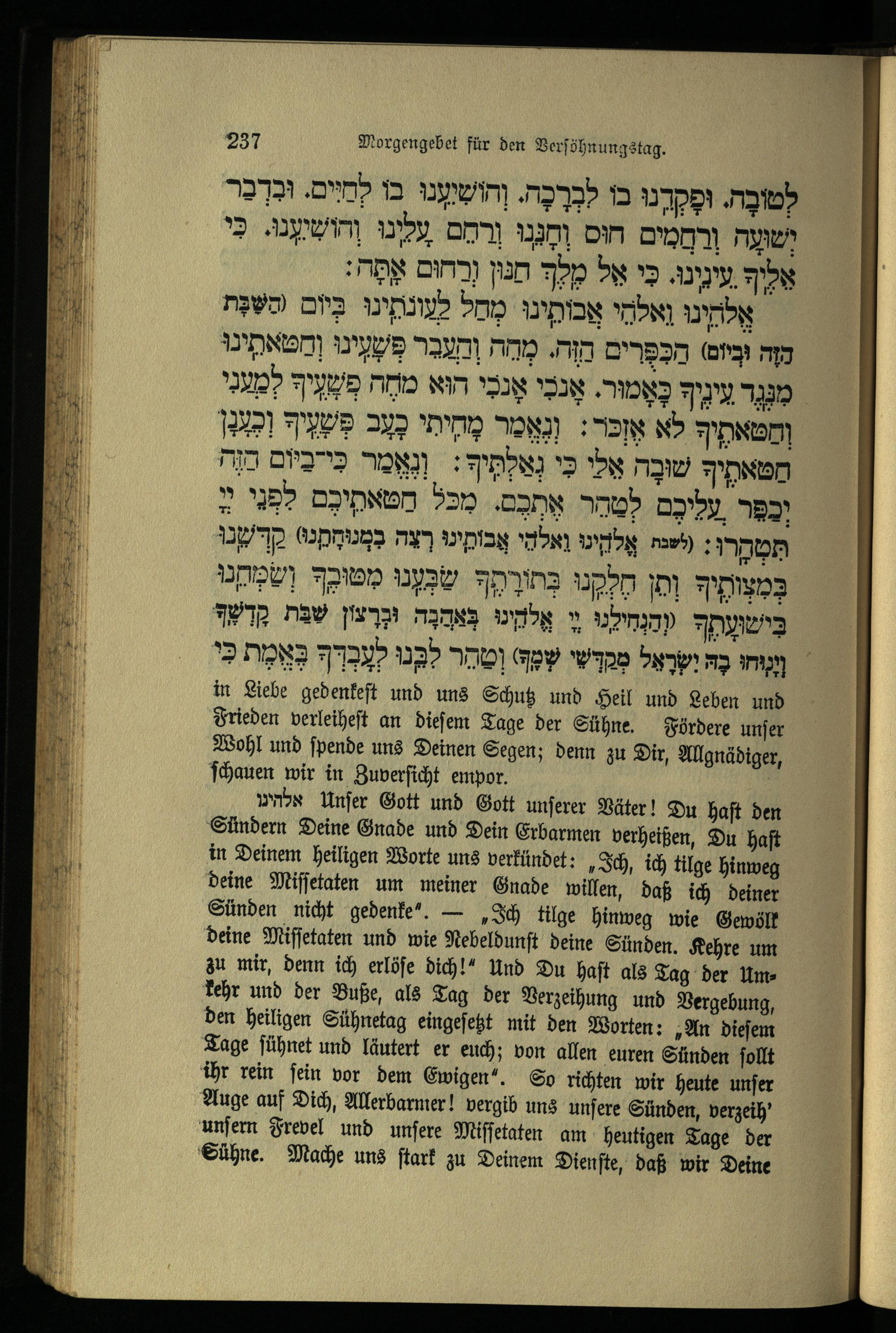 תפילה שחרית ליום כפור Morgengebet für den Versöhnungstag.