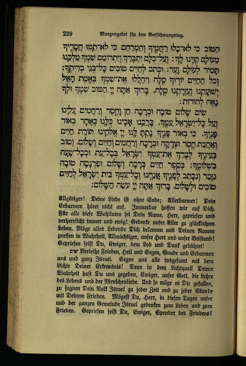 תפילה נעילה ליום כפור Schlußgebet für den Versöhnungstag.