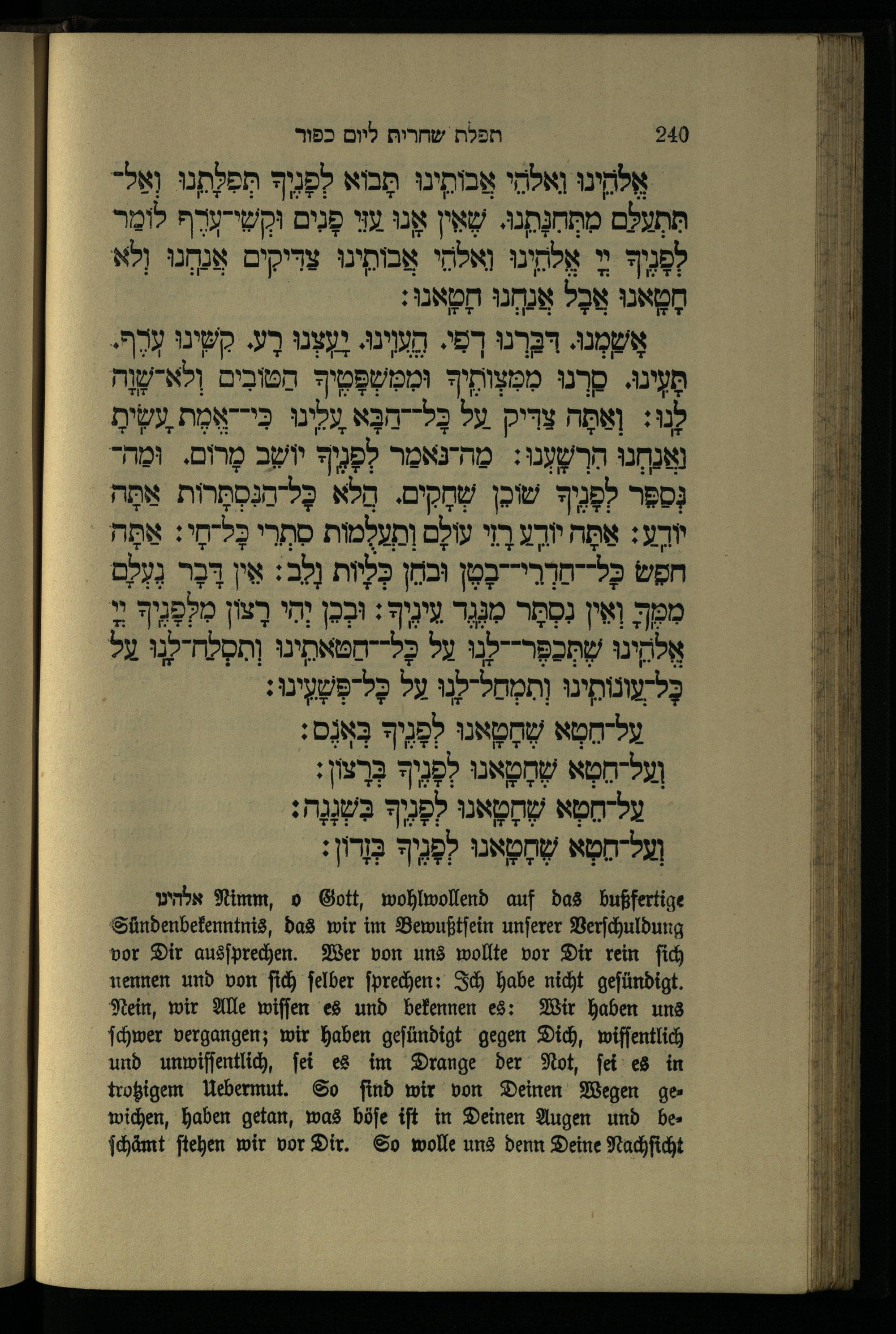 תפילה שחרית ליום כפור Morgengebet für den Versöhnungstag.