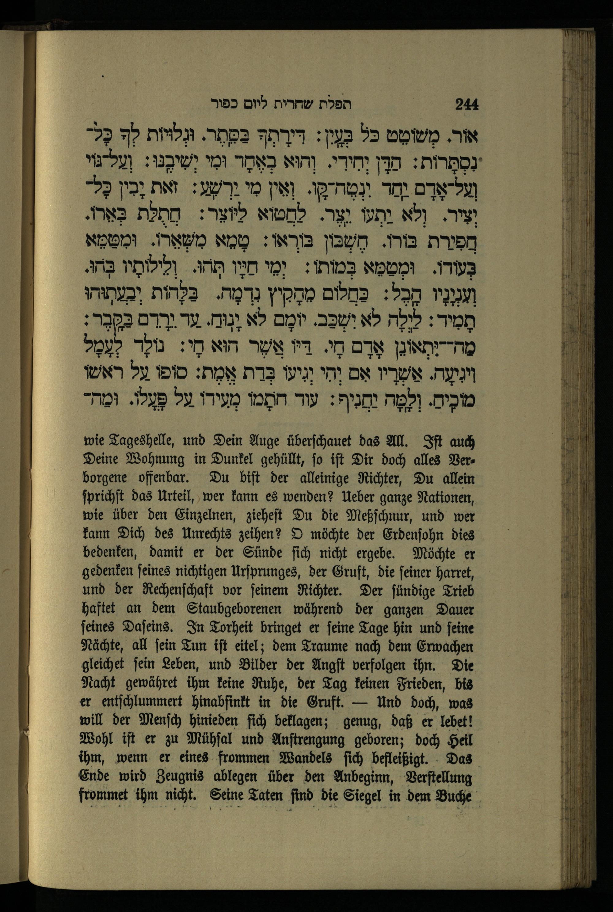 תפילה שחרית ליום כפור Morgengebet für den Versöhnungstag.