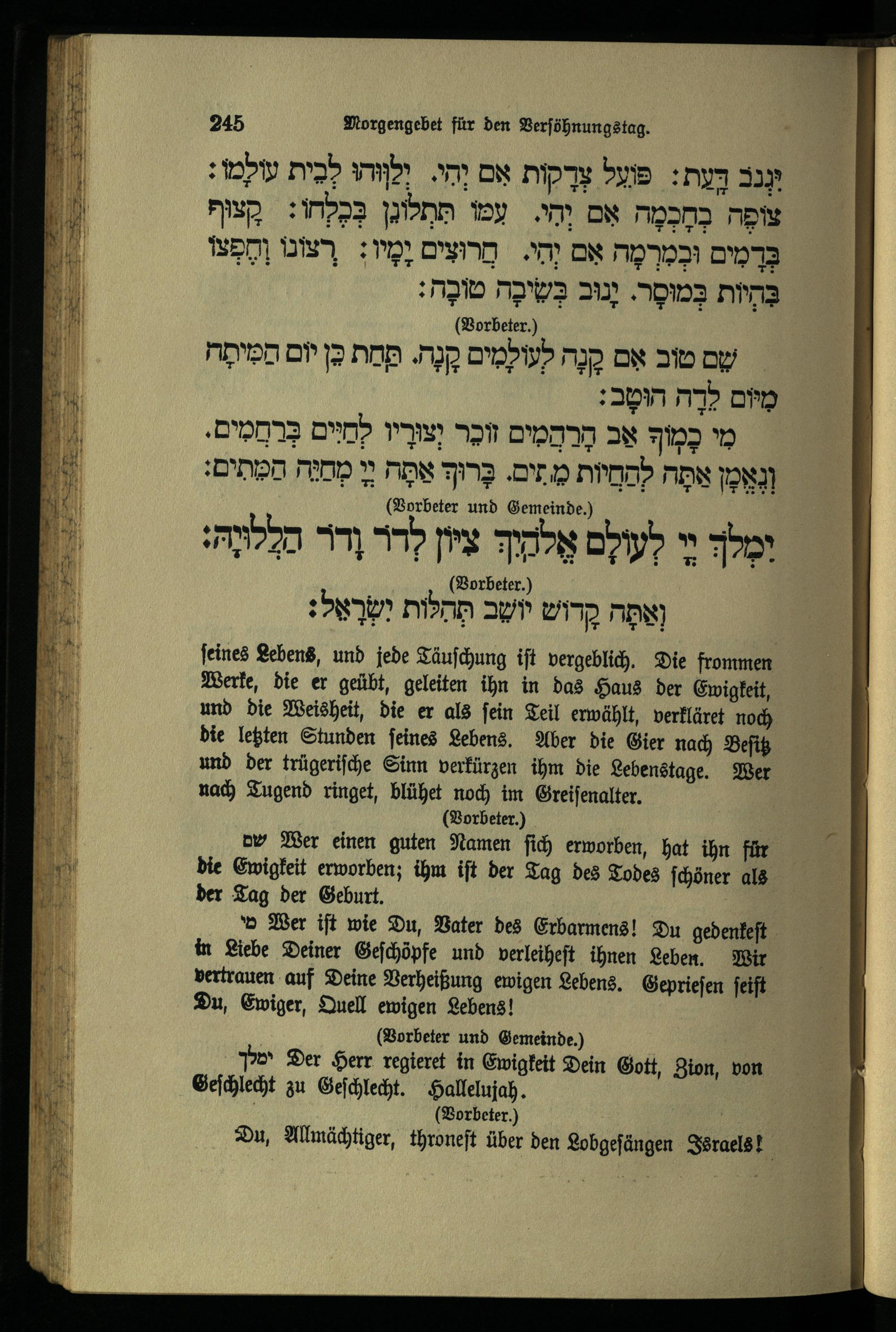 תפילה שחרית ליום כפור Morgengebet für den Versöhnungstag.