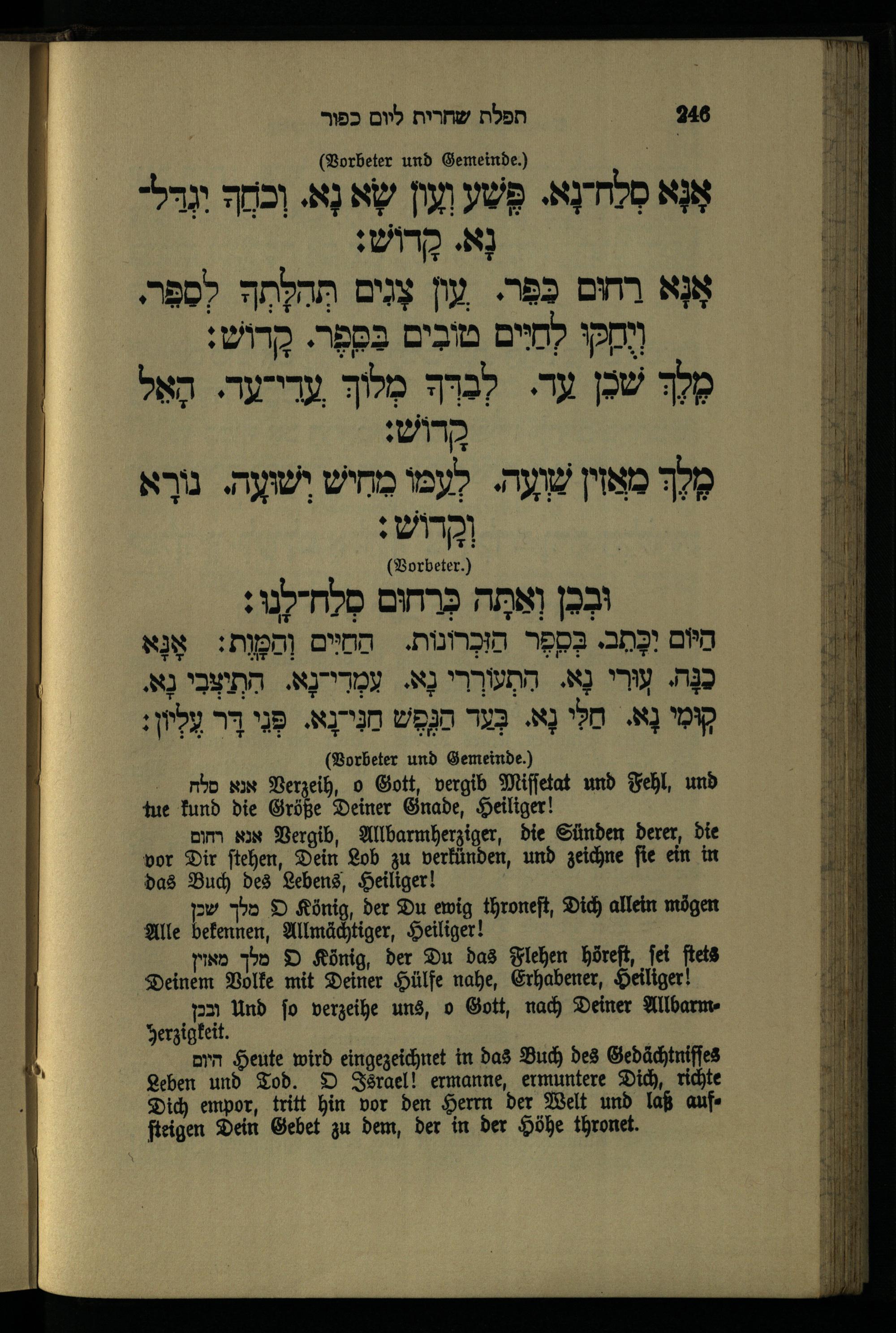 תפילה מוסף ליום כפור Mußafgebet für den Versöhnungstag.