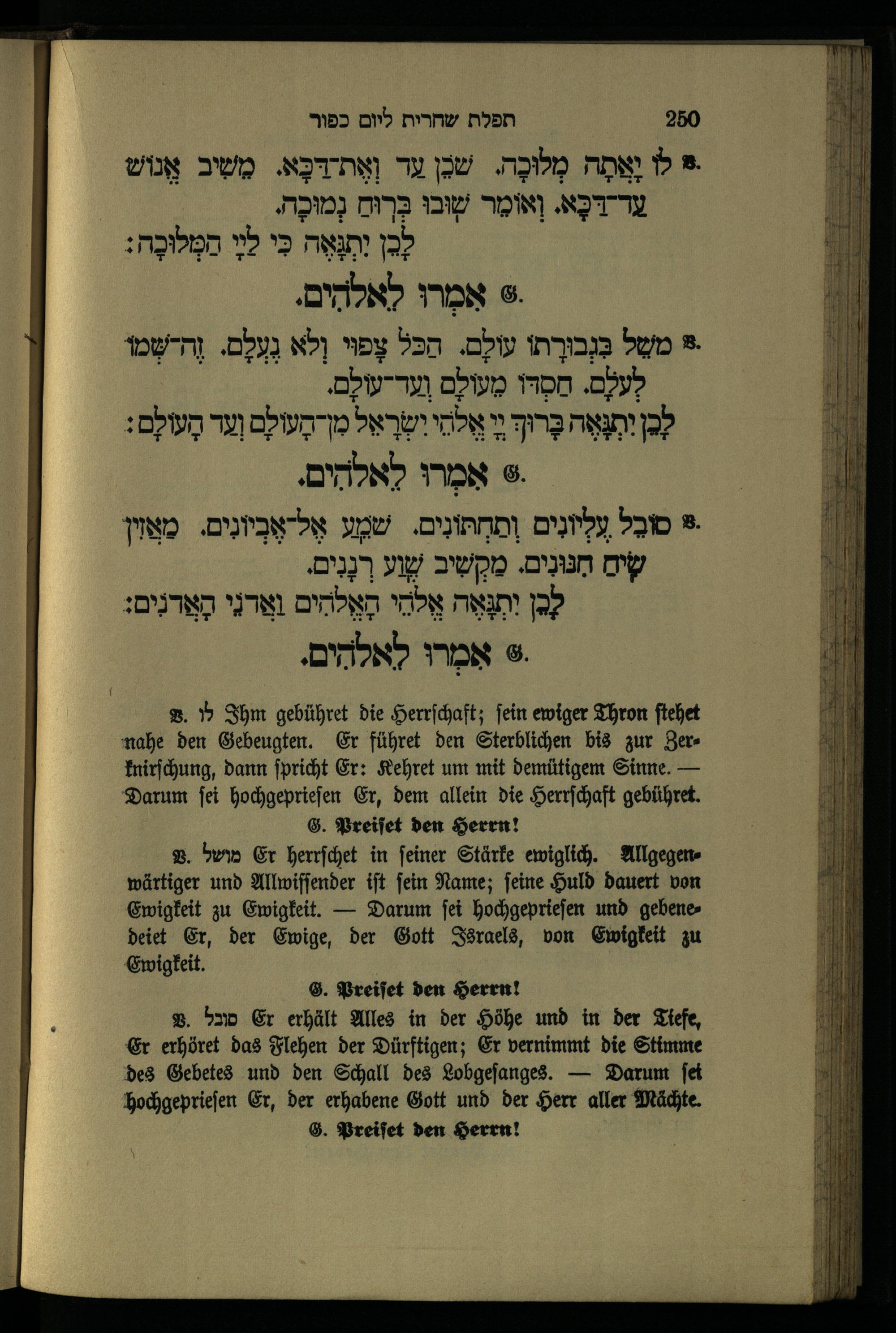 תפילה שחרית ליום כפור Morgengebet für den Versöhnungstag.