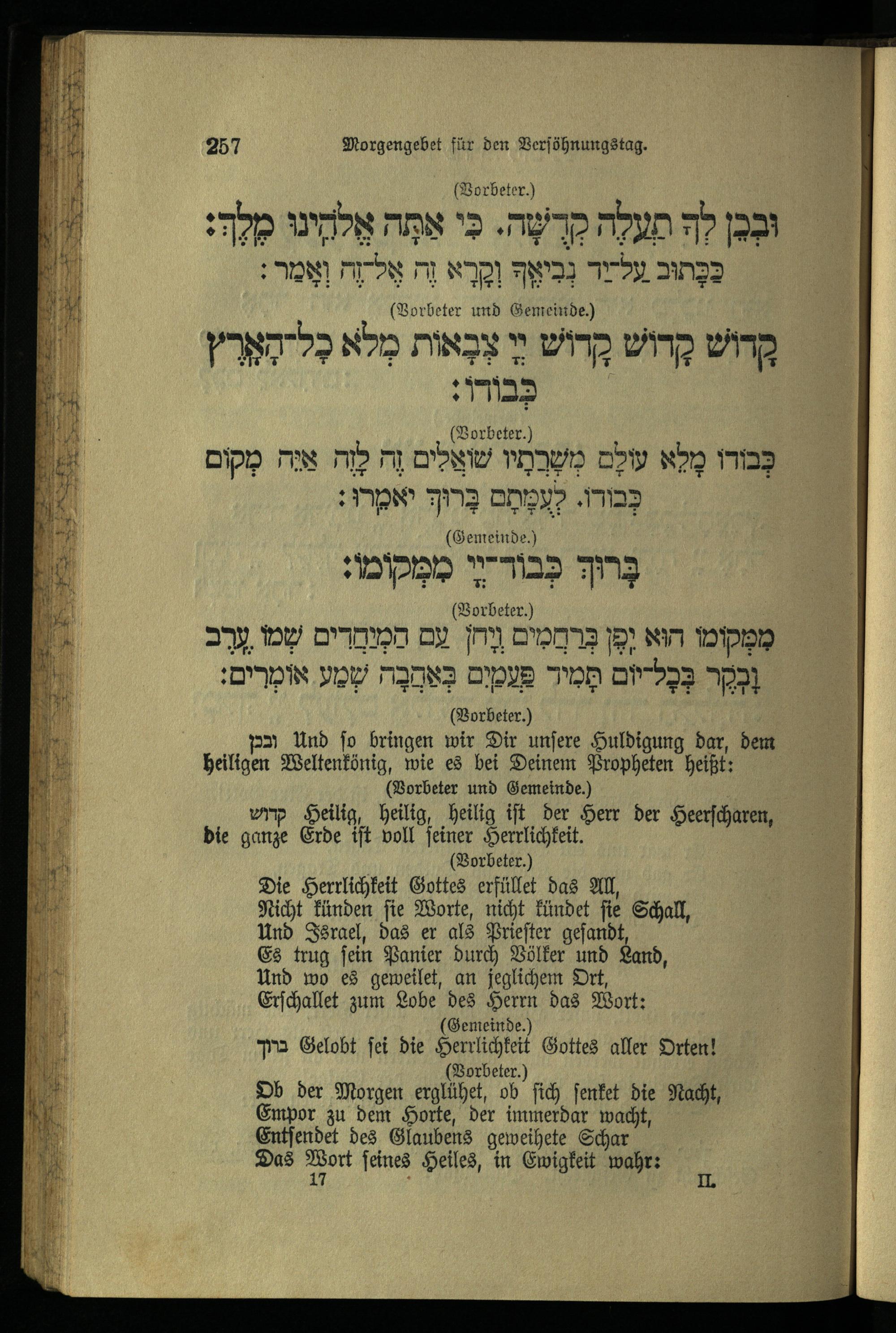 תפילה שחרית ליום כפור Morgengebet für den Versöhnungstag.