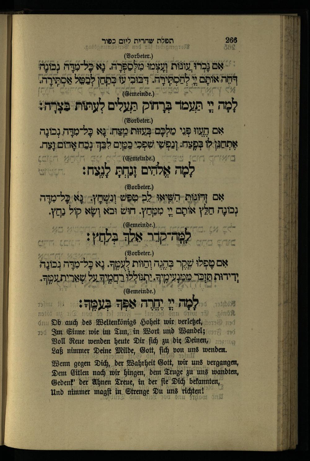 תפילה שחרית ליום כפור Morgengebet für den Versöhnungstag.