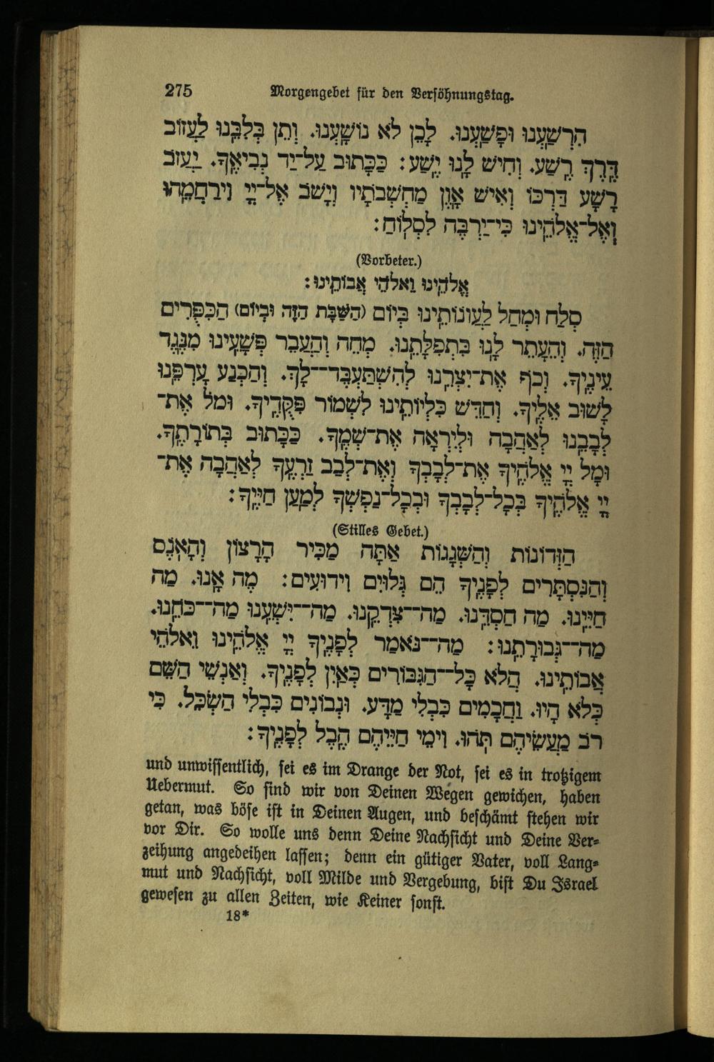 תפילה שחרית ליום כפור Morgengebet für den Versöhnungstag.