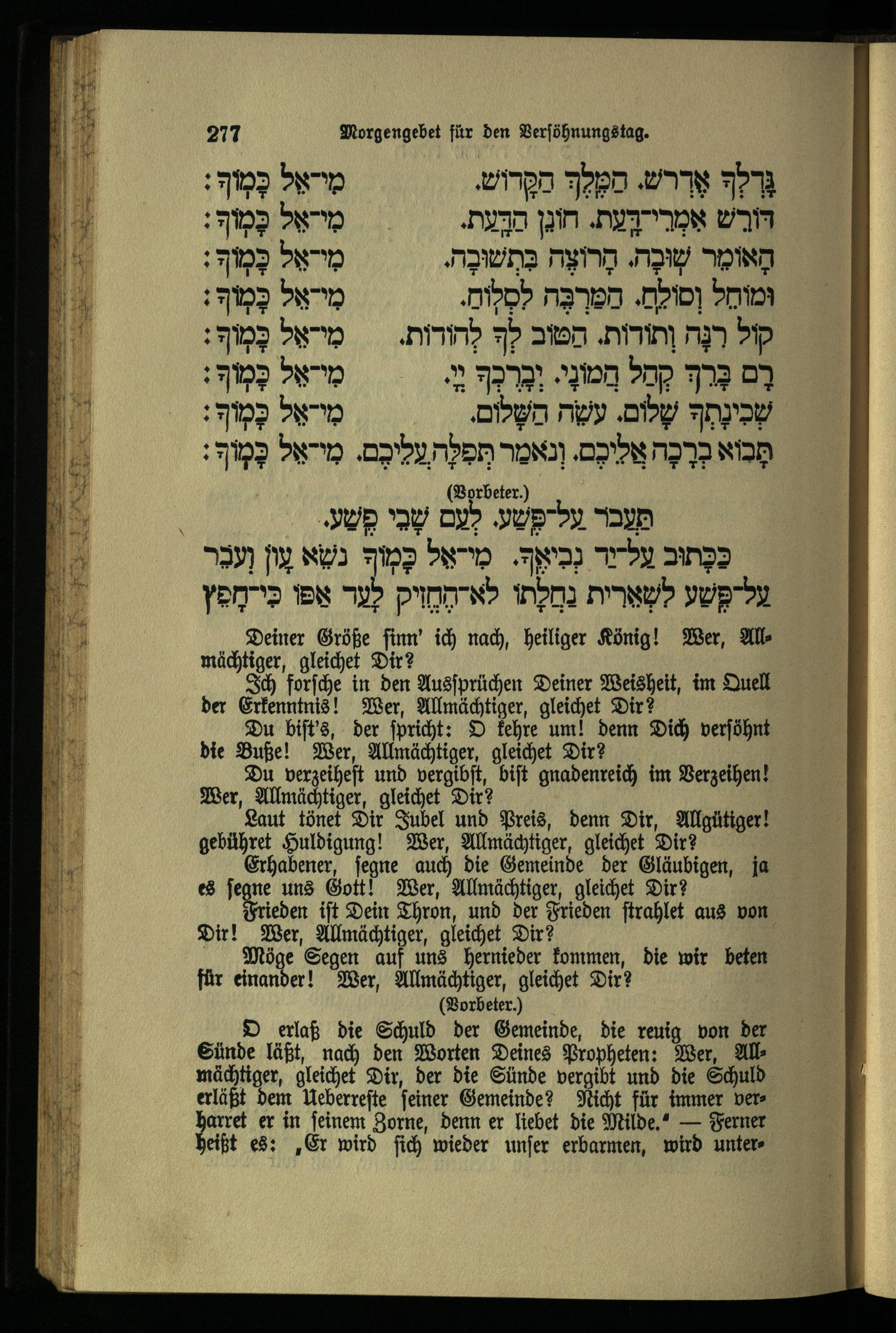 תפילה שחרית ליום כפור Morgengebet für den Versöhnungstag.