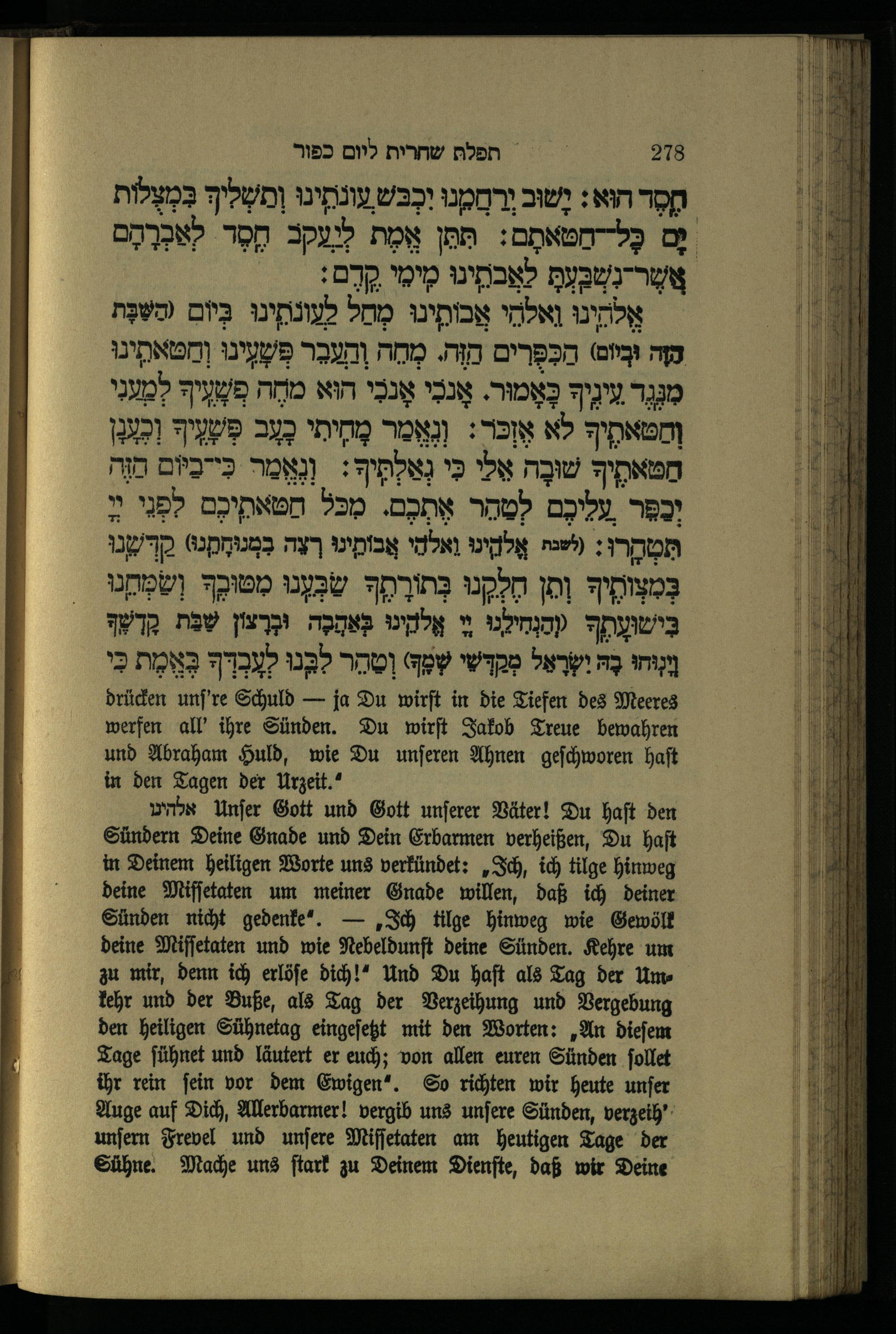 תפילה מנחה ליום כפור Minchahgebet für den Versöhnungstag.