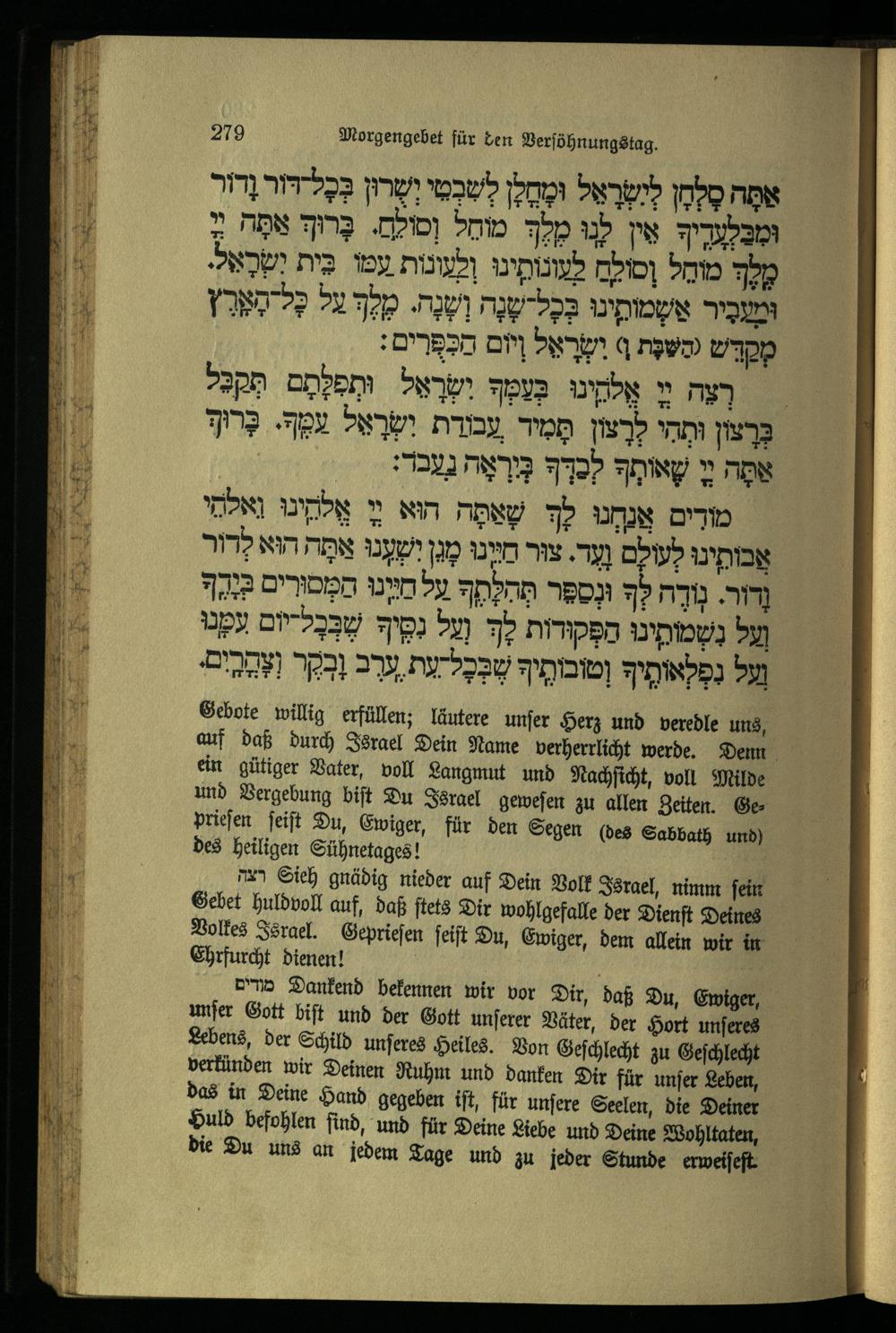 תפילה שחרית ליום כפור Morgengebet für den Versöhnungstag.