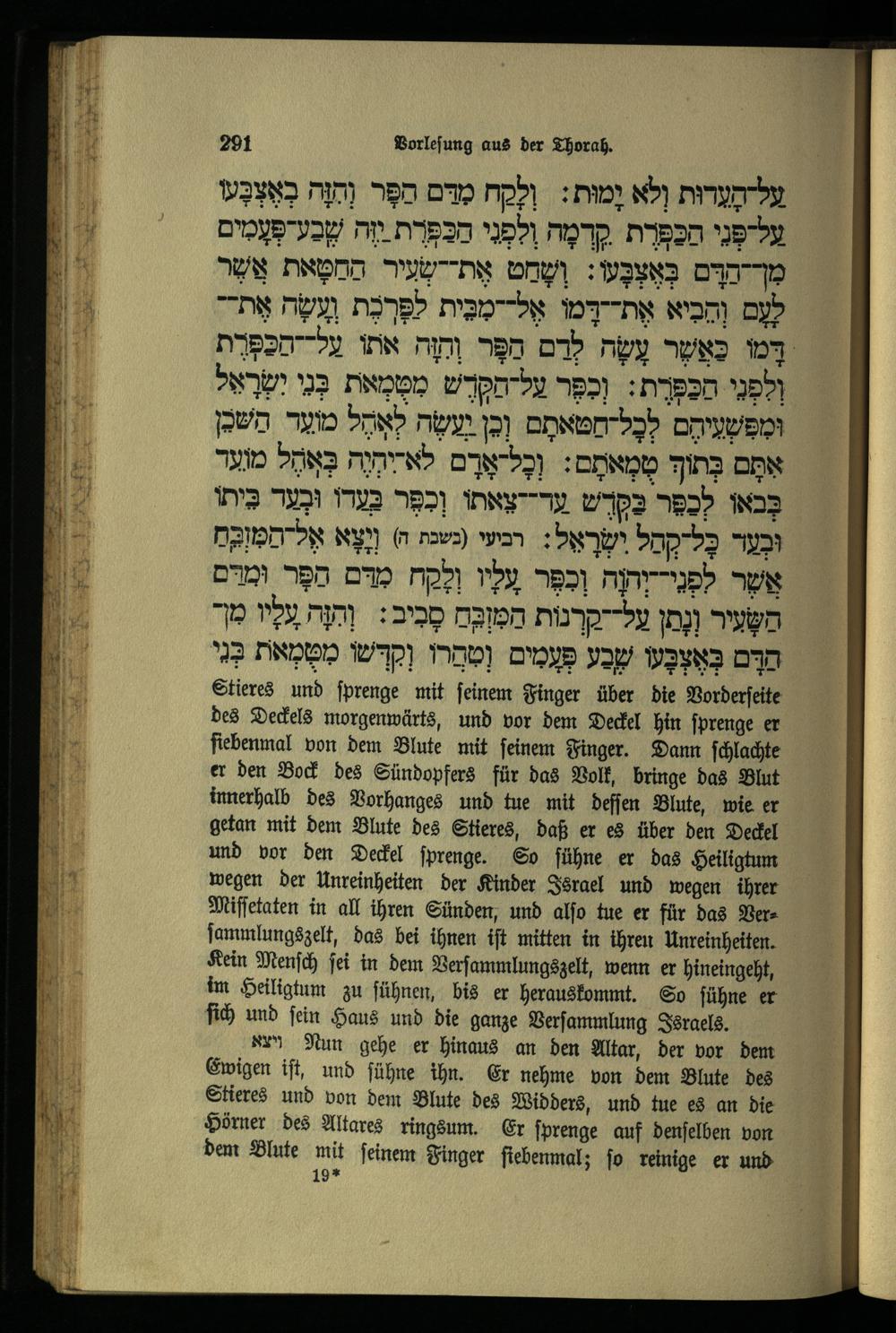 סדר קריאת התורה ליום כפור Vorlesung aus der Thorah.