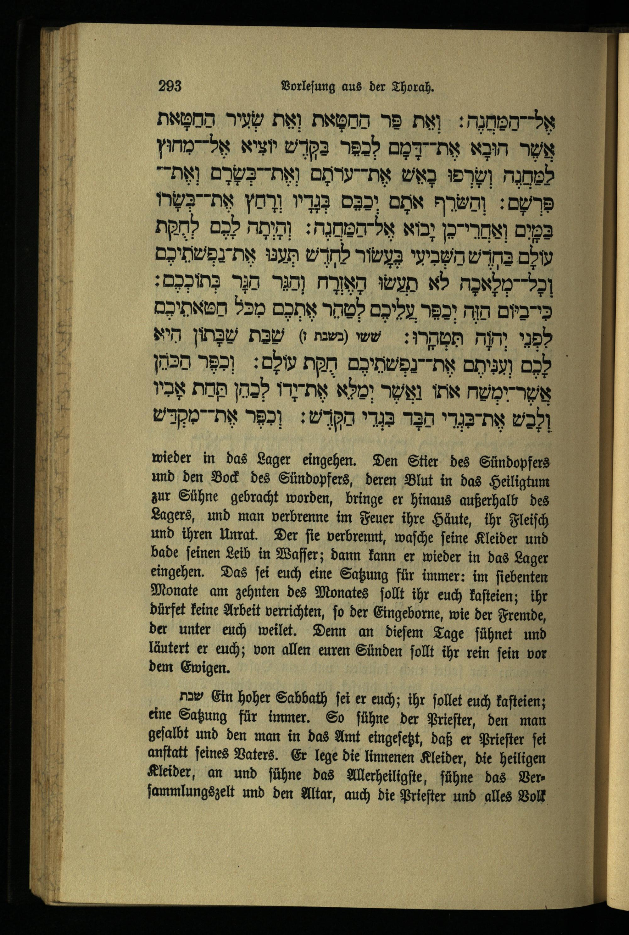 סדר קריאת התורה ליום כפור Vorlesung aus der Thorah.