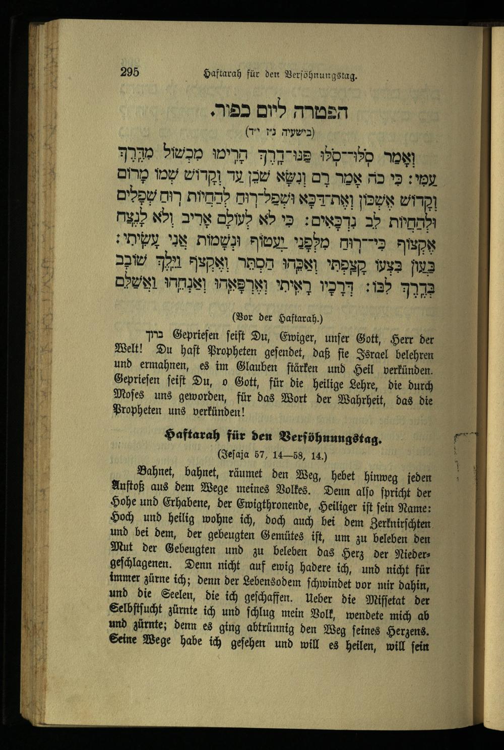 הפטרה ליום כפור Haftarah für den Versöhnungstag.