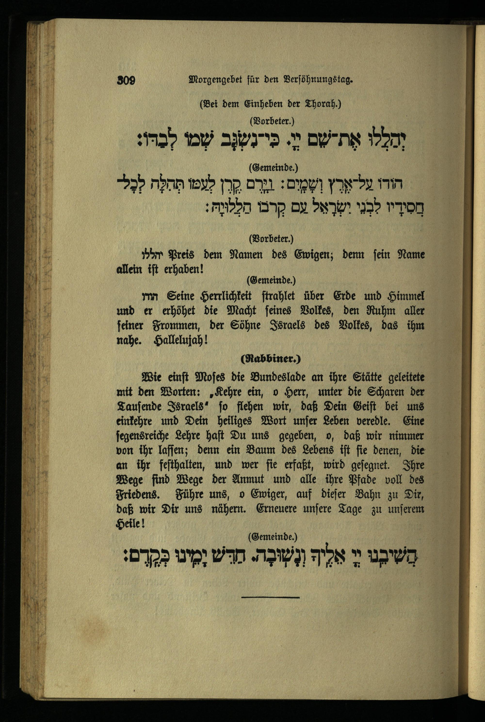 תפילה מנחה ליום כפור Minchahgebet für den Versöhnungstag.