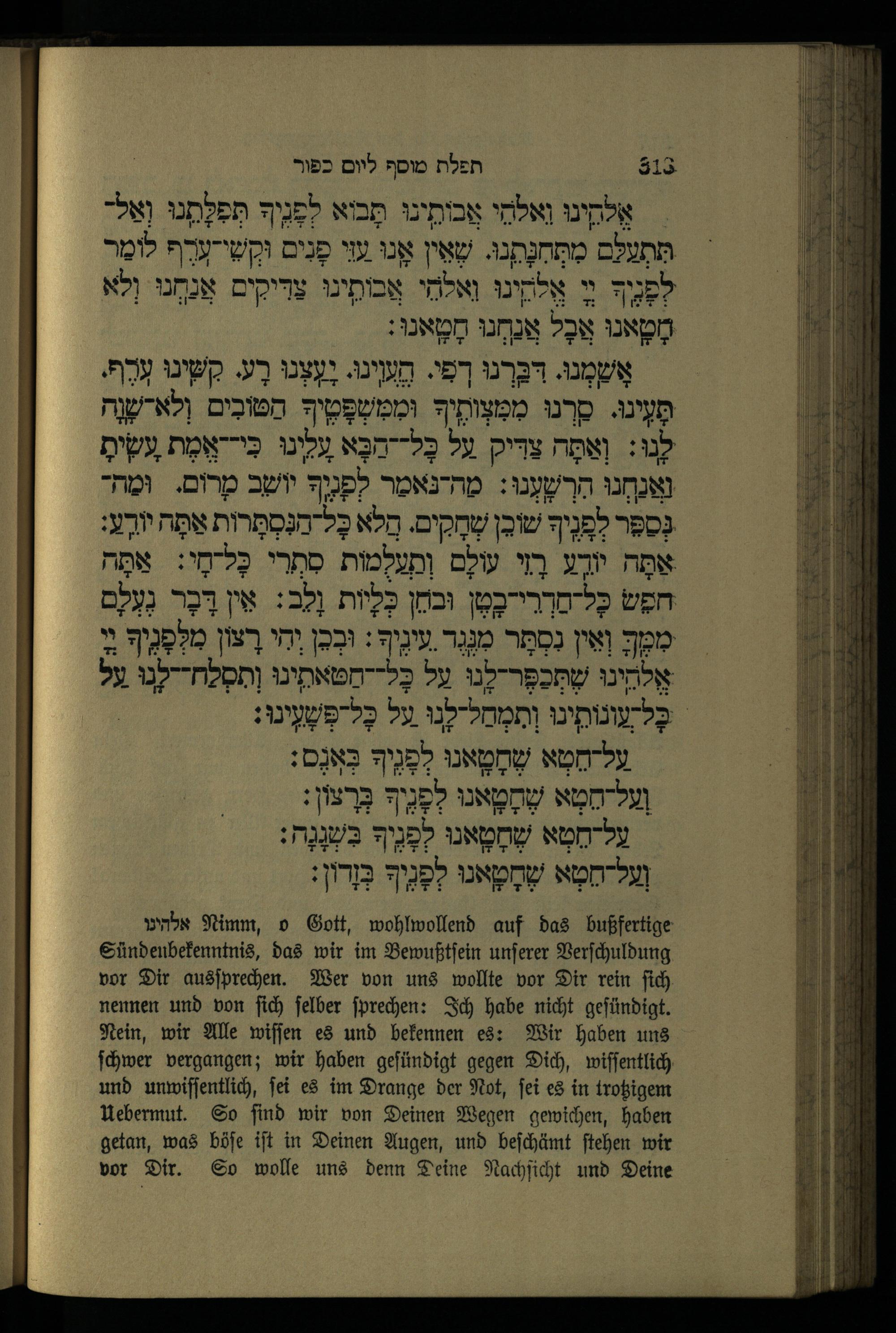 תפילה מוסף ליום כפור Mußafgebet für den Versöhnungstag.