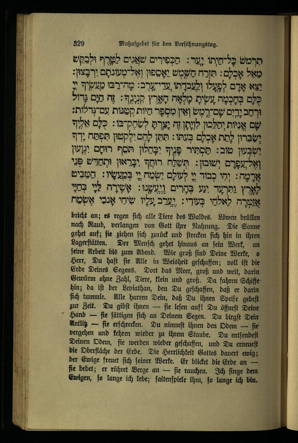 תפילה שחרית ליום כפור Morgengebet für den Versöhnungstag.
