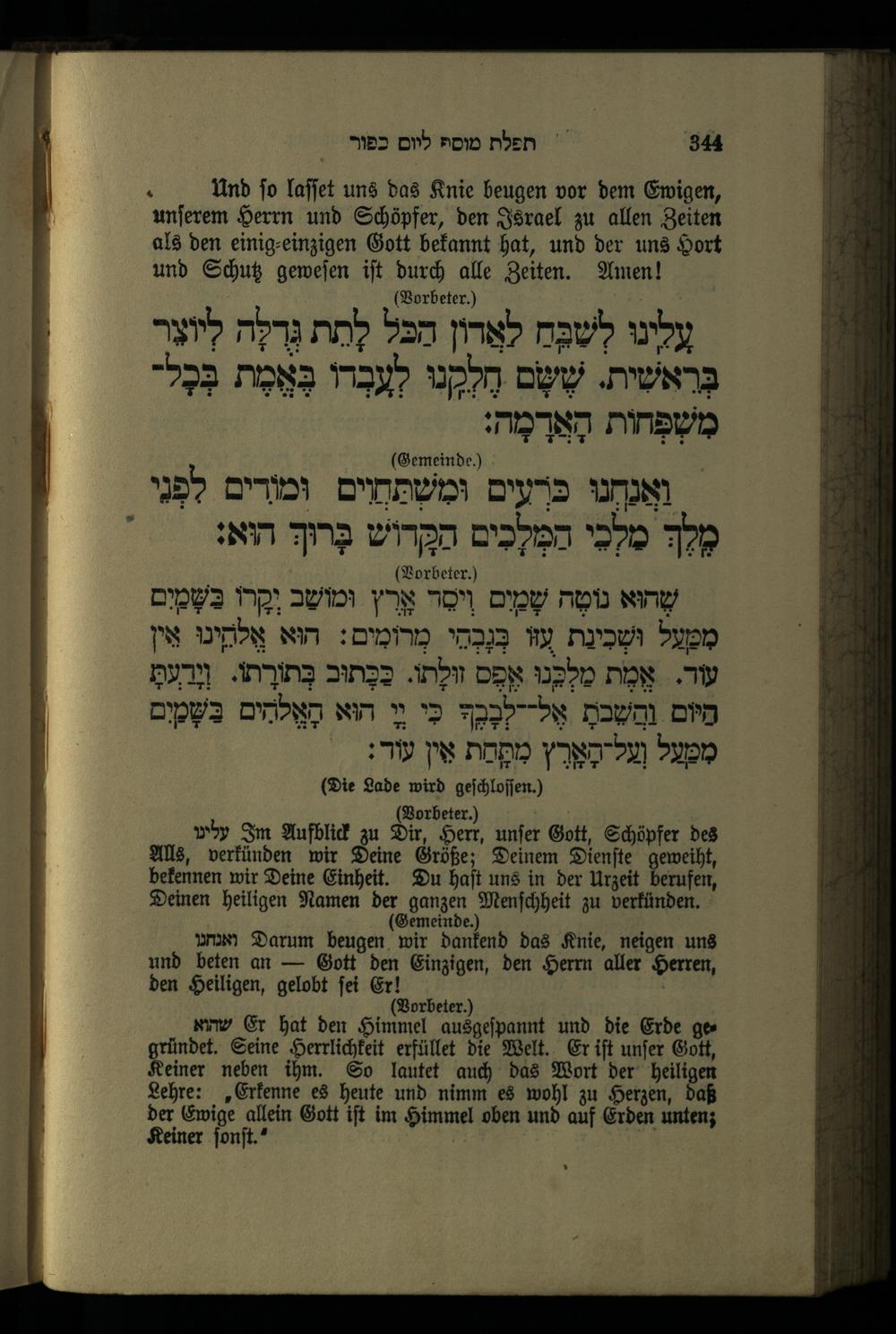 תפילה נעילה ליום כפור Schlußgebet für den Versöhnungstag.