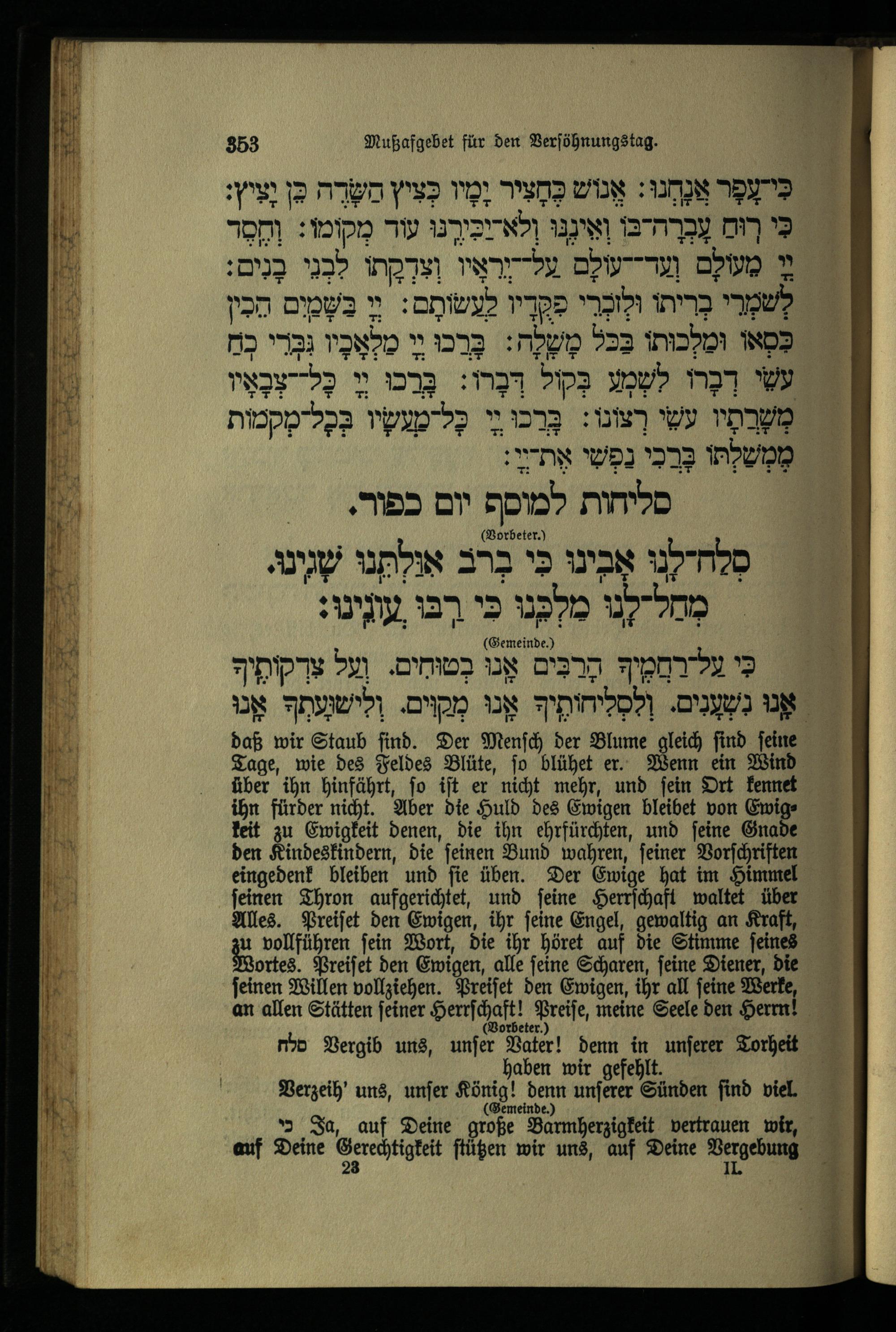 תפילה מוסף ליום כפור Mußafgebet für den Versöhnungstag.