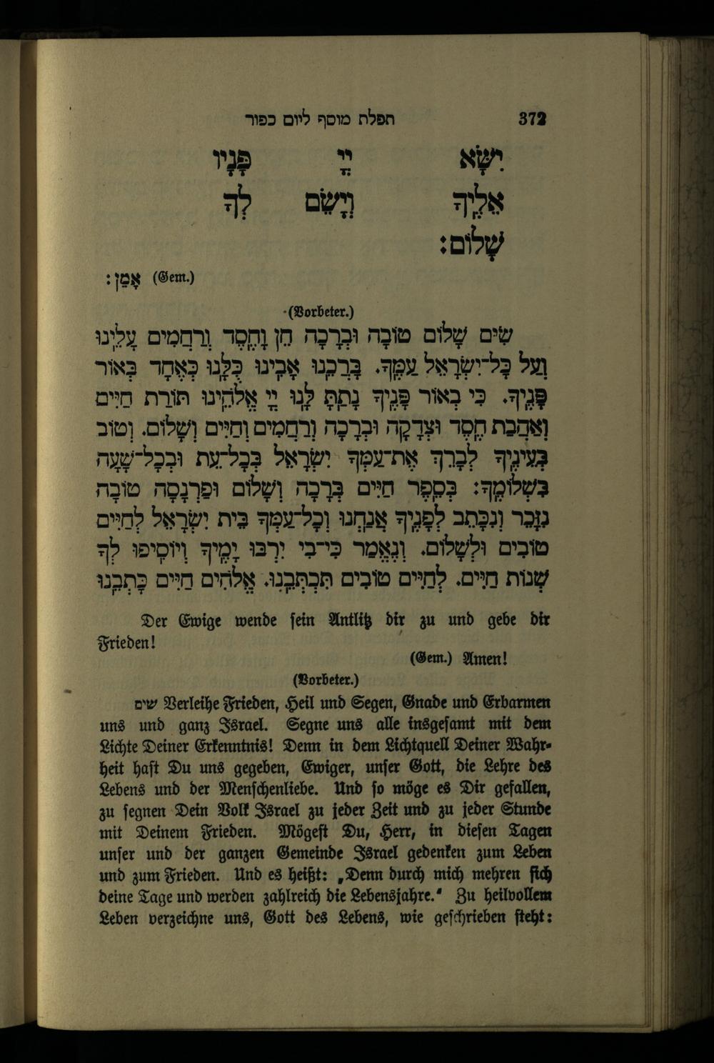 תפילה מנחה ליום כפור Minchahgebet für den Versöhnungstag.