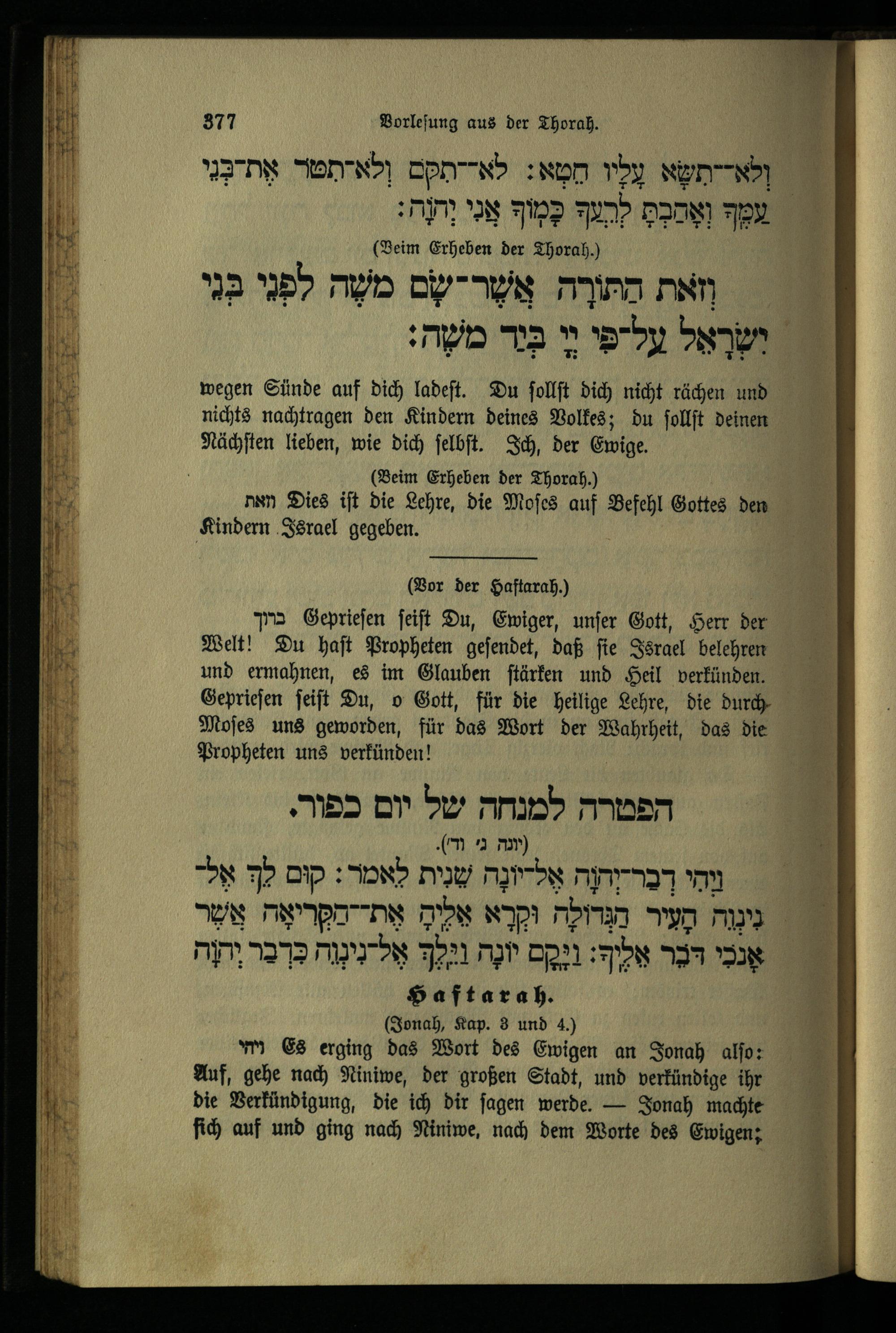 תפילה מנחה ליום כפור Minchahgebet für den Versöhnungstag.