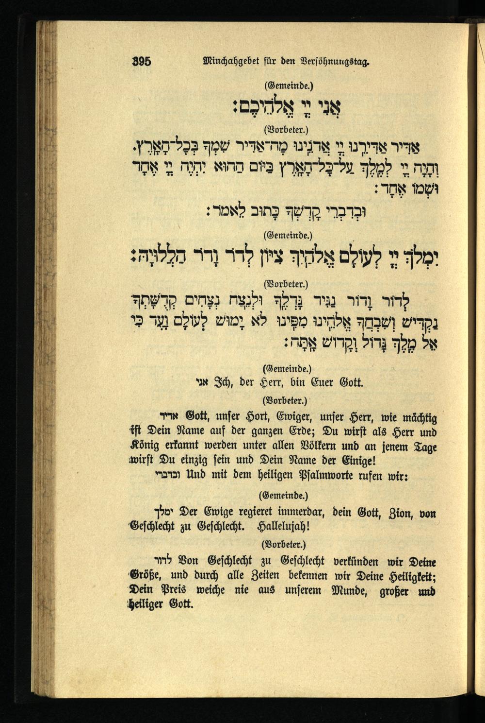 תפילה מנחה ליום כפור Minchahgebet für den Versöhnungstag.