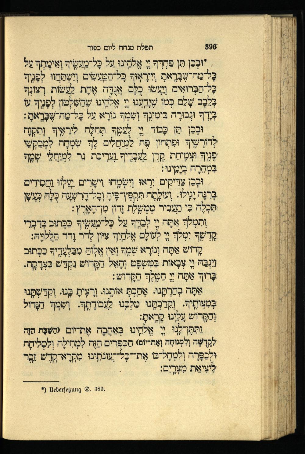 תפילה מנחה ליום כפור Minchahgebet für den Versöhnungstag.