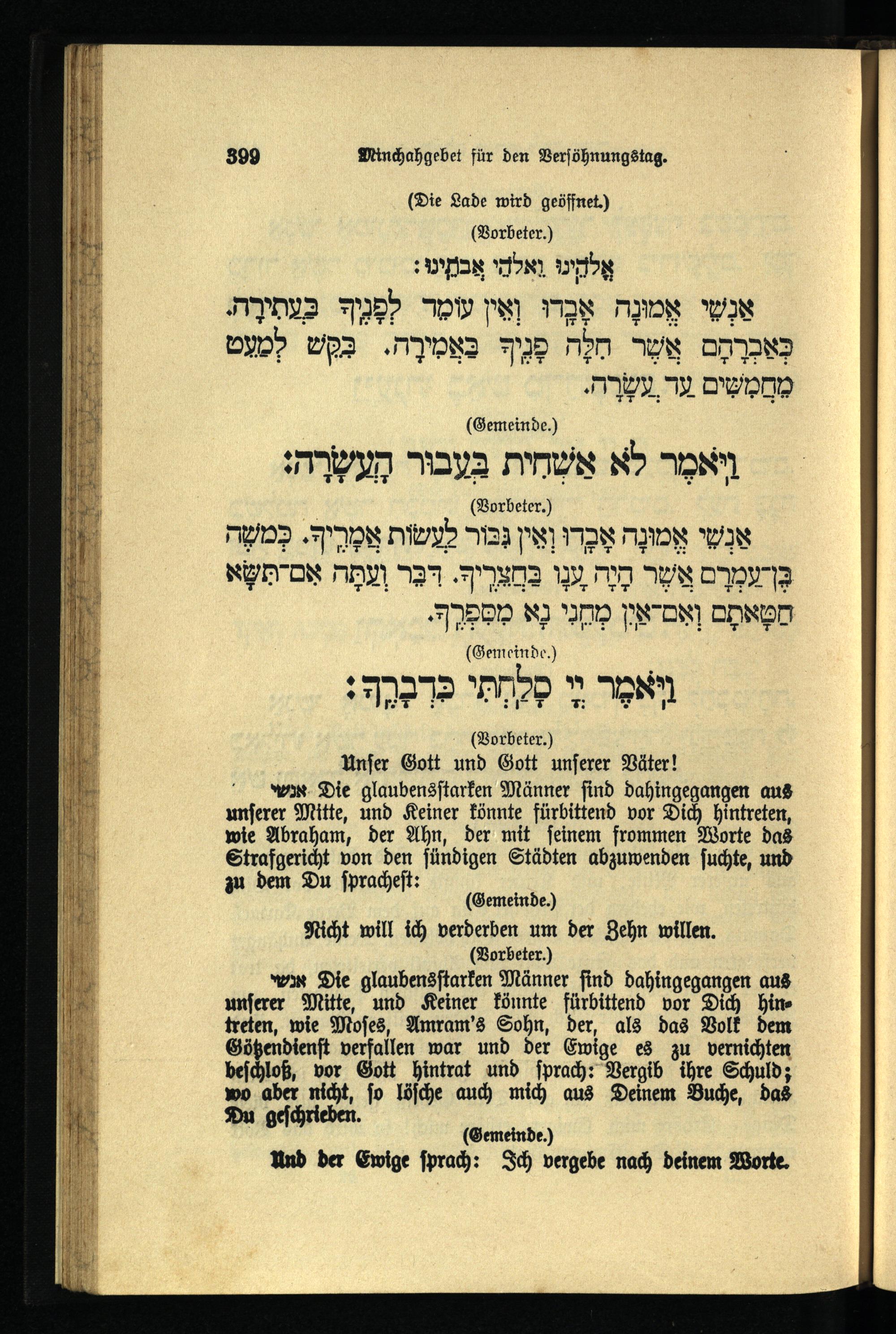 תפילה מנחה ליום כפור Minchahgebet für den Versöhnungstag.