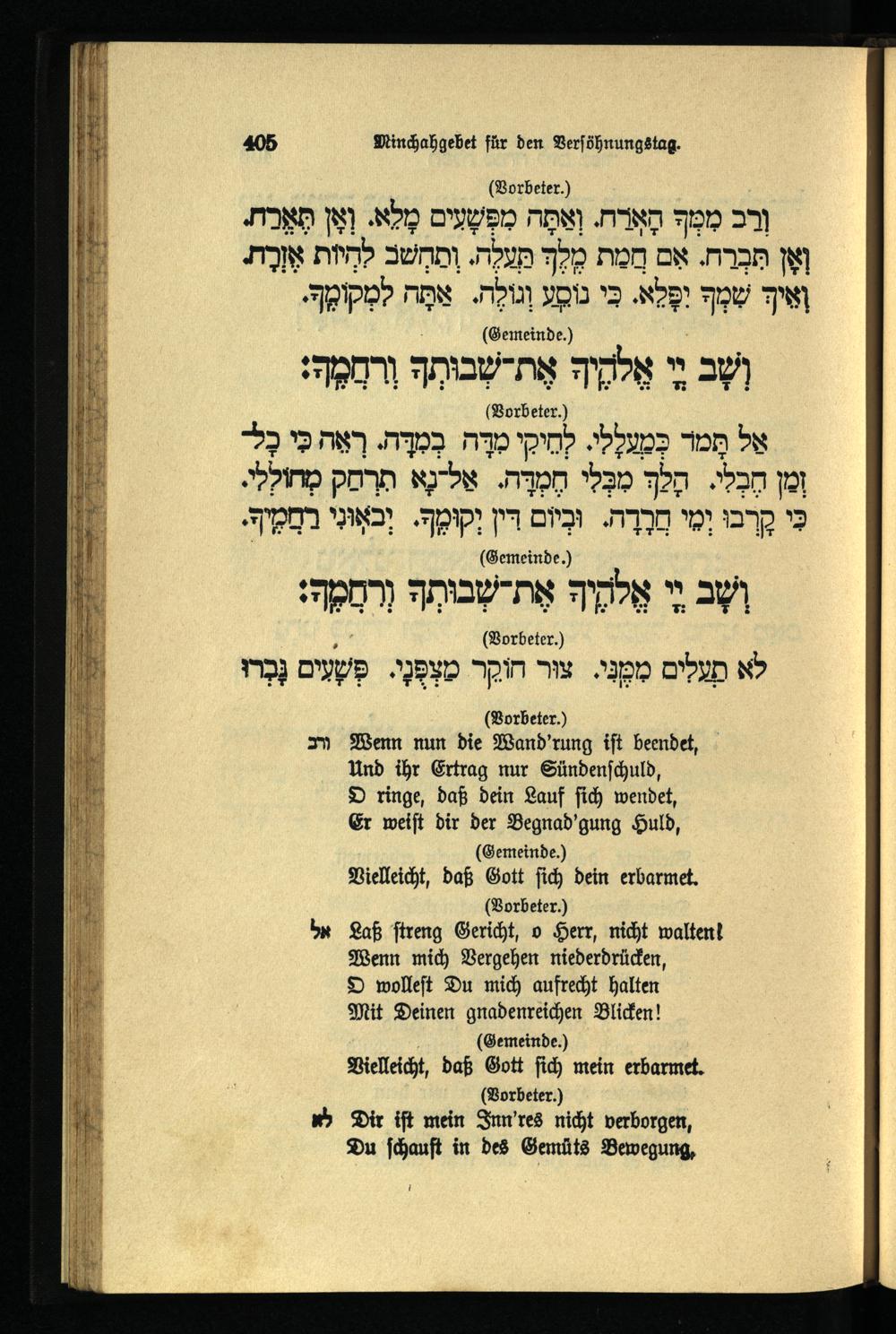 תפילה מנחה ליום כפור Minchahgebet für den Versöhnungstag.