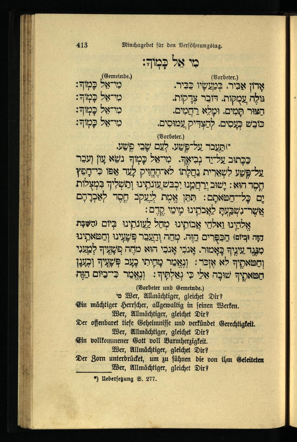 תפילה מנחה ליום כפור Minchahgebet für den Versöhnungstag.