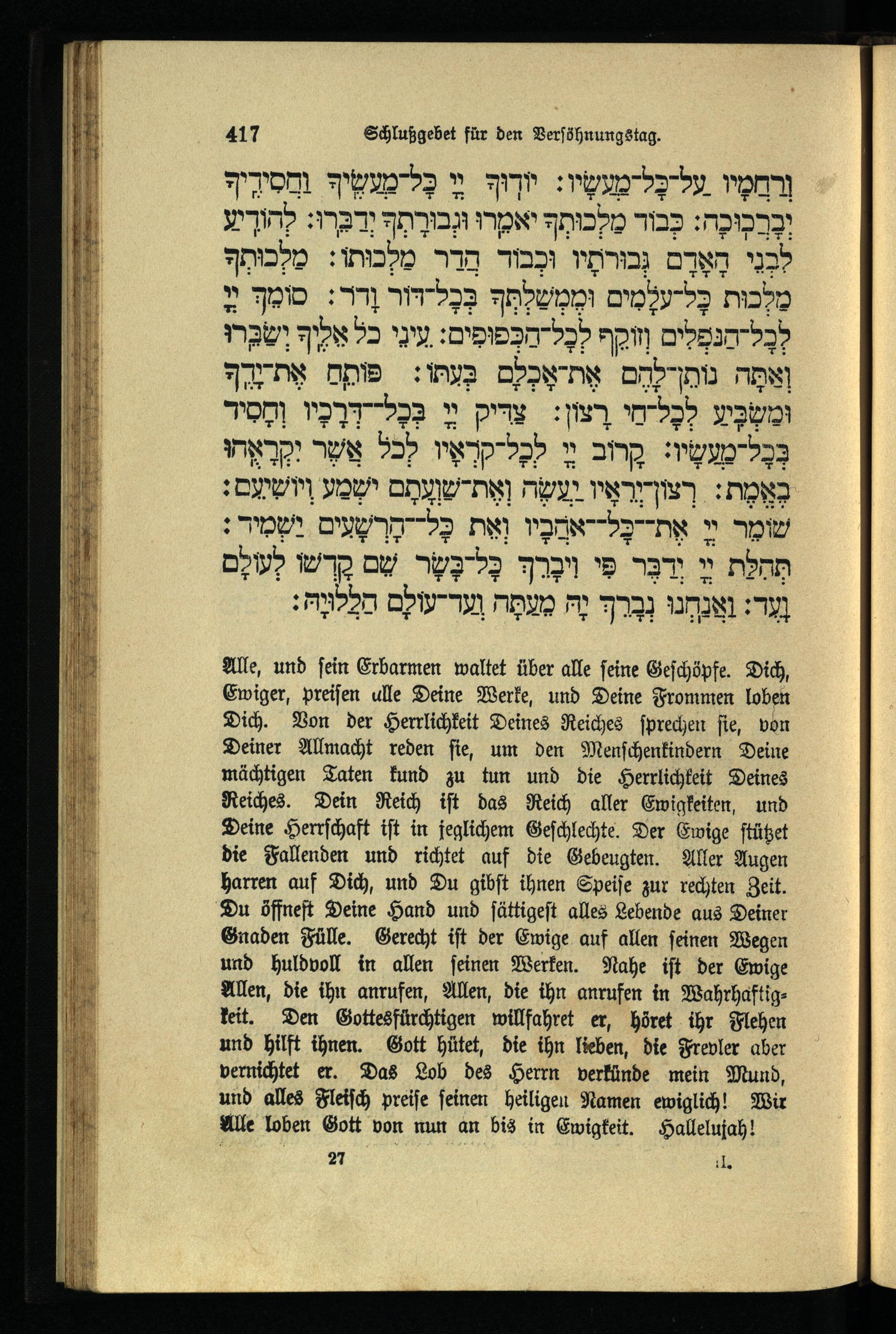 תפילה נעילה ליום כפור Schlußgebet für den Versöhnungstag.