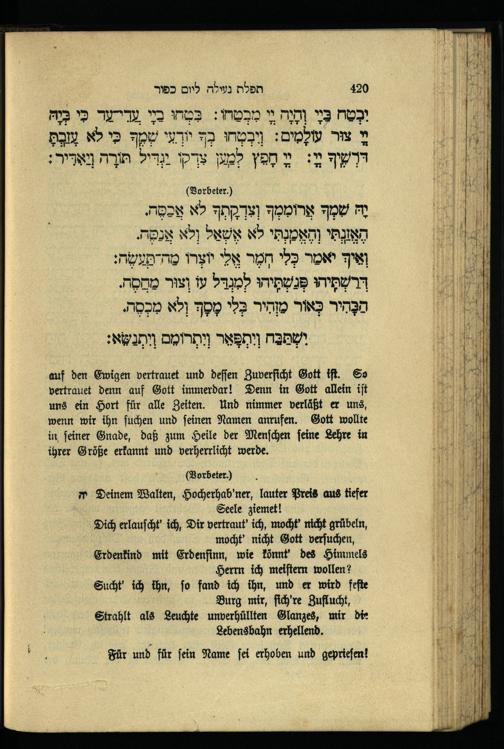 תפילה מנחה ליום כפור Minchahgebet für den Versöhnungstag.