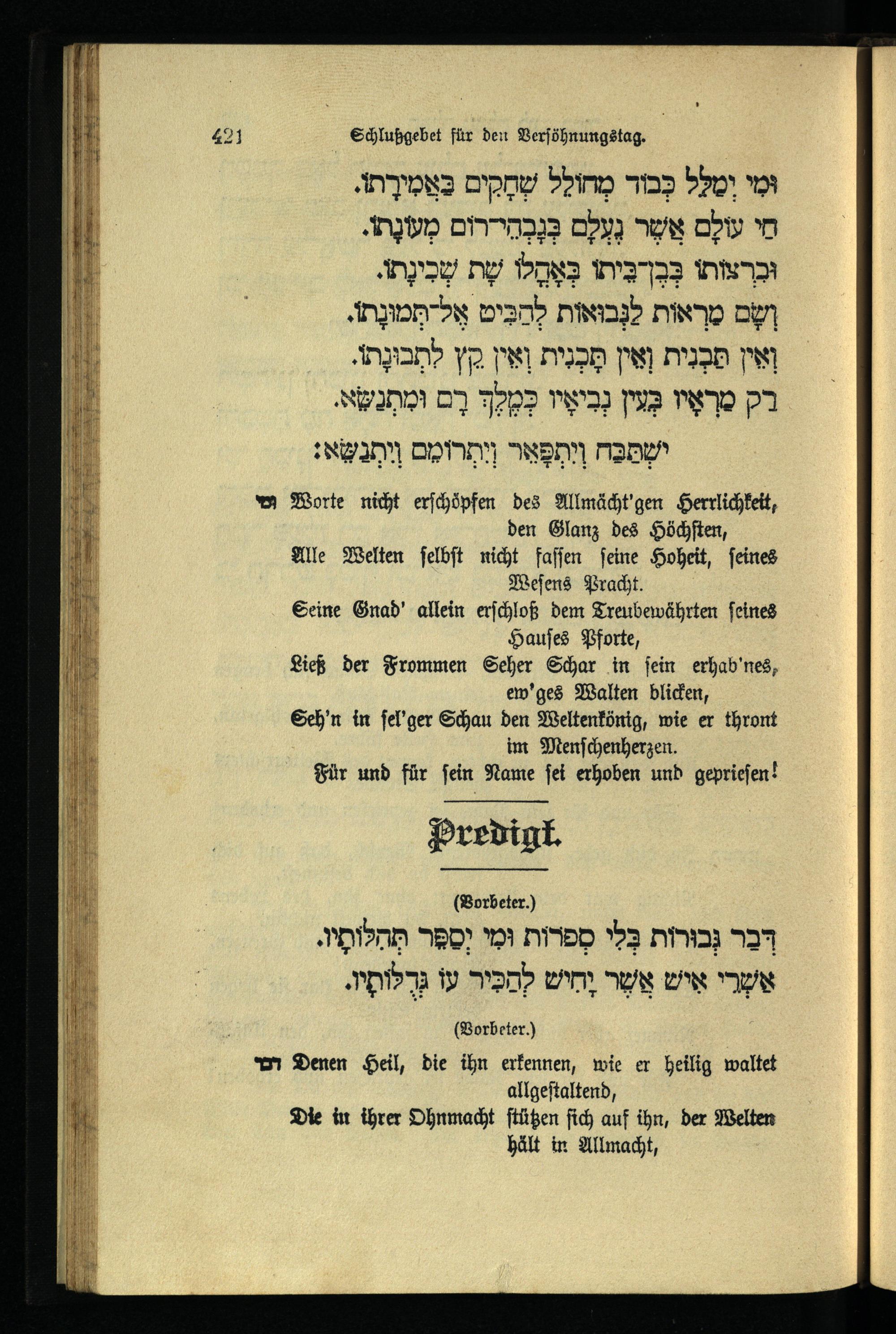 תפילה נעילה ליום כפור Schlußgebet für den Versöhnungstag.