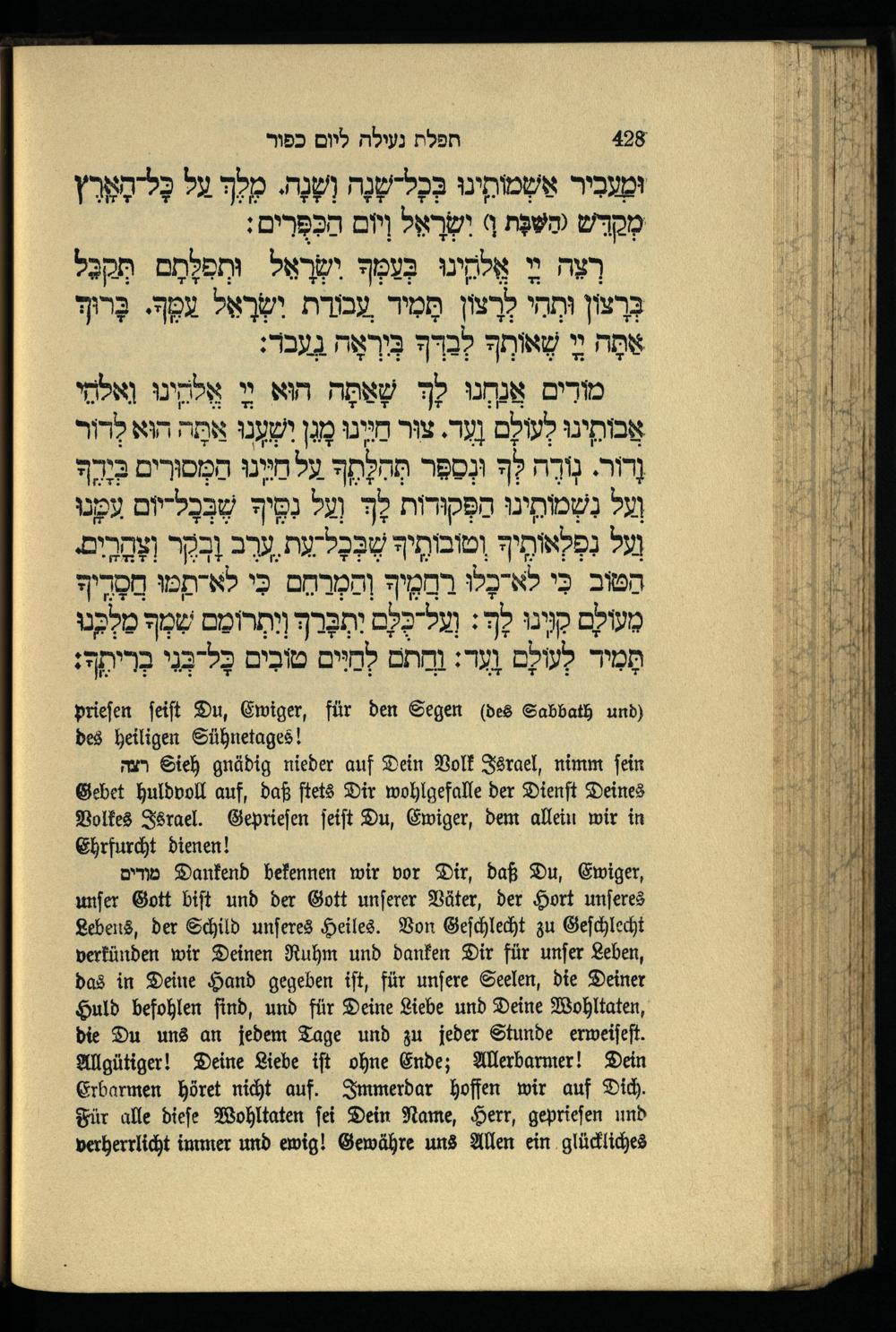 תפילה נעילה ליום כפור Schlußgebet für den Versöhnungstag.