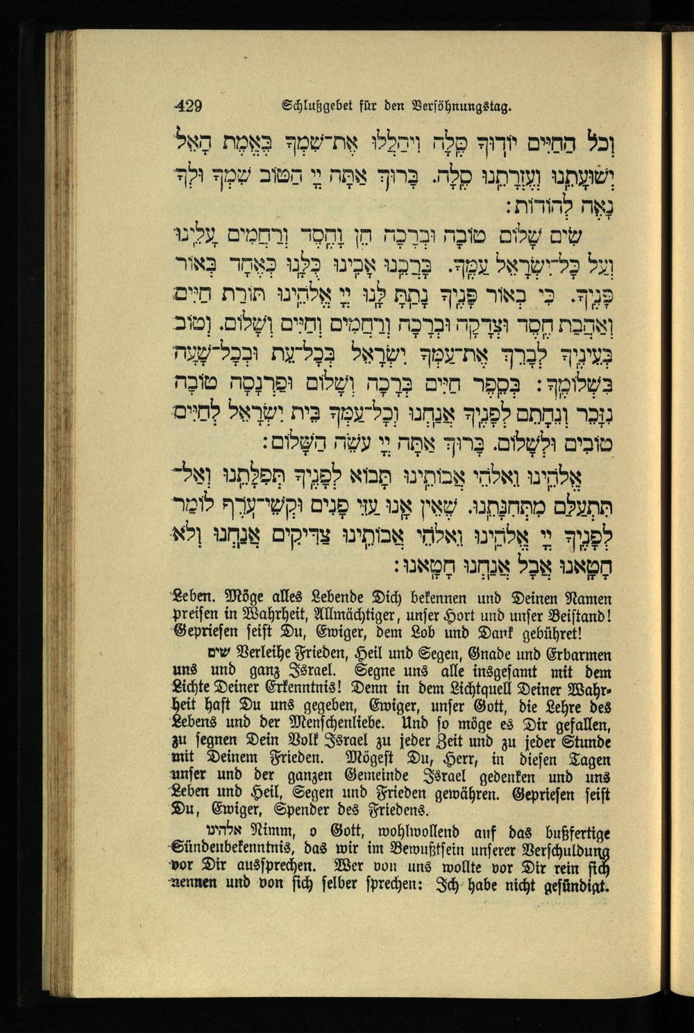 תפילה נעילה ליום כפור Schlußgebet für den Versöhnungstag.